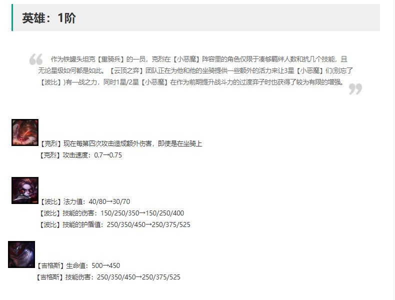 1费解读:此次更新1费改动均为小恶魔棋子,均属于增强。且2费凯南大幅度增强赌小恶魔再次崛起。