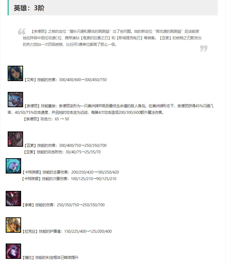 卡特削弱,但只是削弱了1星技能伤害,影响不大。
