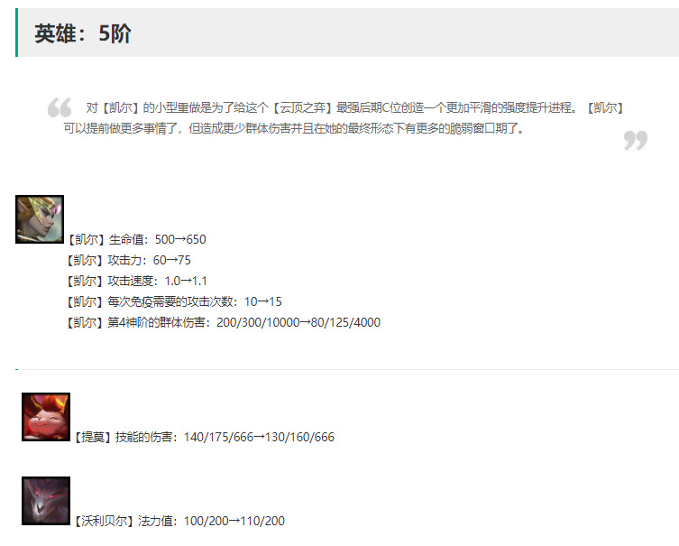 提莫削弱,1/2星技能伤害削弱,但由于这版本小恶魔极大加强,提莫出场率可能会增加。