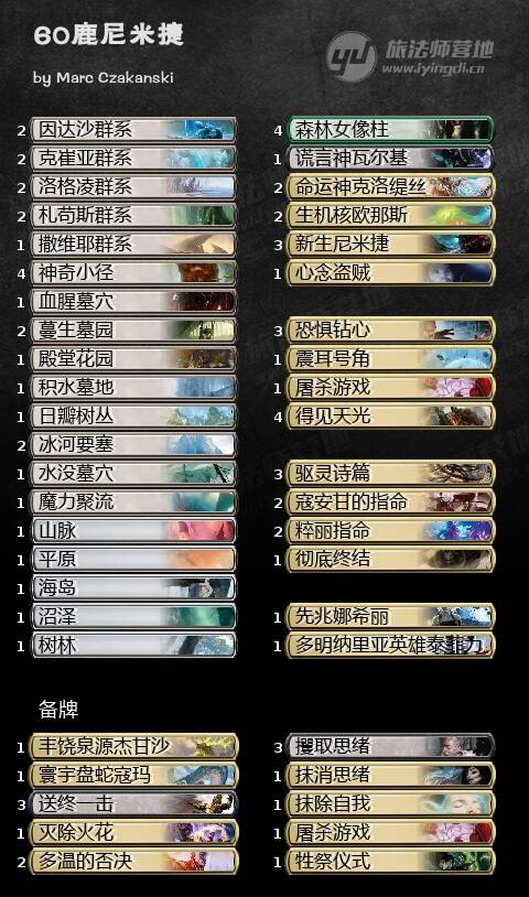 牌表的话其实金鱼上可以找到非常多,而且基本上每套都不一样,这里只能给出两套参考,但是尼米捷这套牌很大的一个乐趣也是自己构筑出一套适合当前环境的套牌。