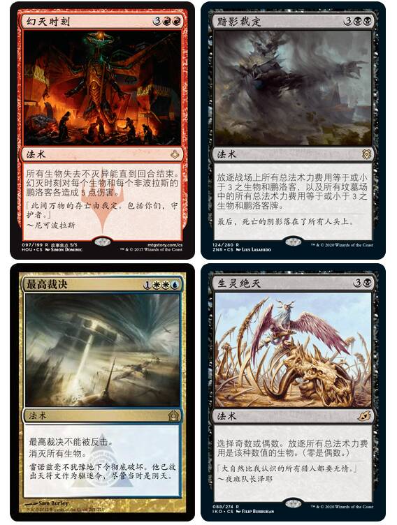 突发衰败/杀手留念:这两张放在一起说主要是因为这两张基本上是在竞争卡位的,衰败不吃康可以杀各种3费及以下的各种非地永久物。AT则是没有法术力的限制但是对手会多一片地,各有千秋,基本上根据环境来做抉择,注意AT是可以炸地的,衰败不可以。