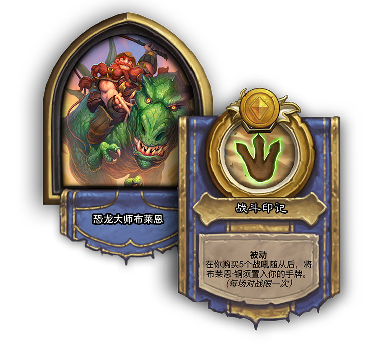 技能效果重做,在你购买5个战吼随从后,将布莱恩·铜须置入你的手牌。(每场对战限一次)