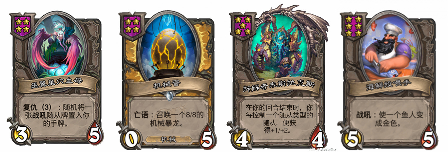 Mitchell:随从的移除主要是为了其他卡牌的加入腾空间。巫翼巢穴主母得以回归,是因为我们喜欢它的游戏性;海鲜投喂手的回归则是在毒鳍鱼人改动的同时让鱼人流仍有好玩的事做。