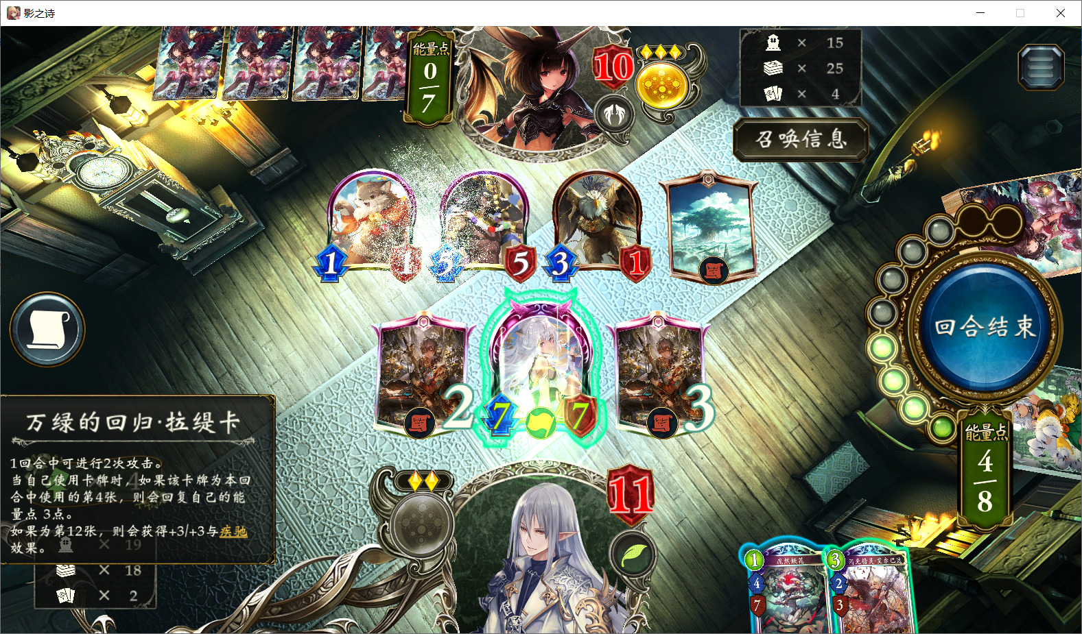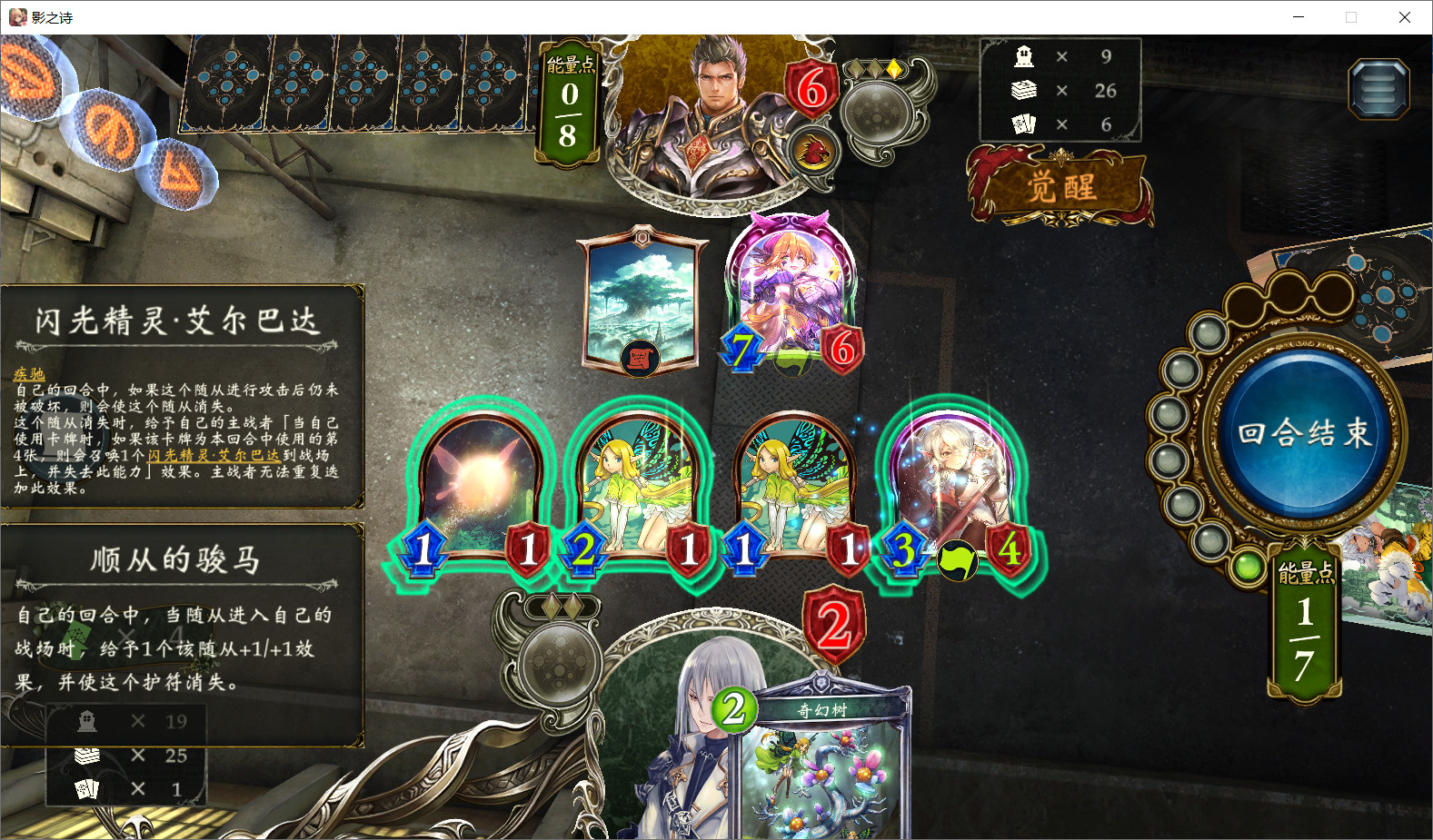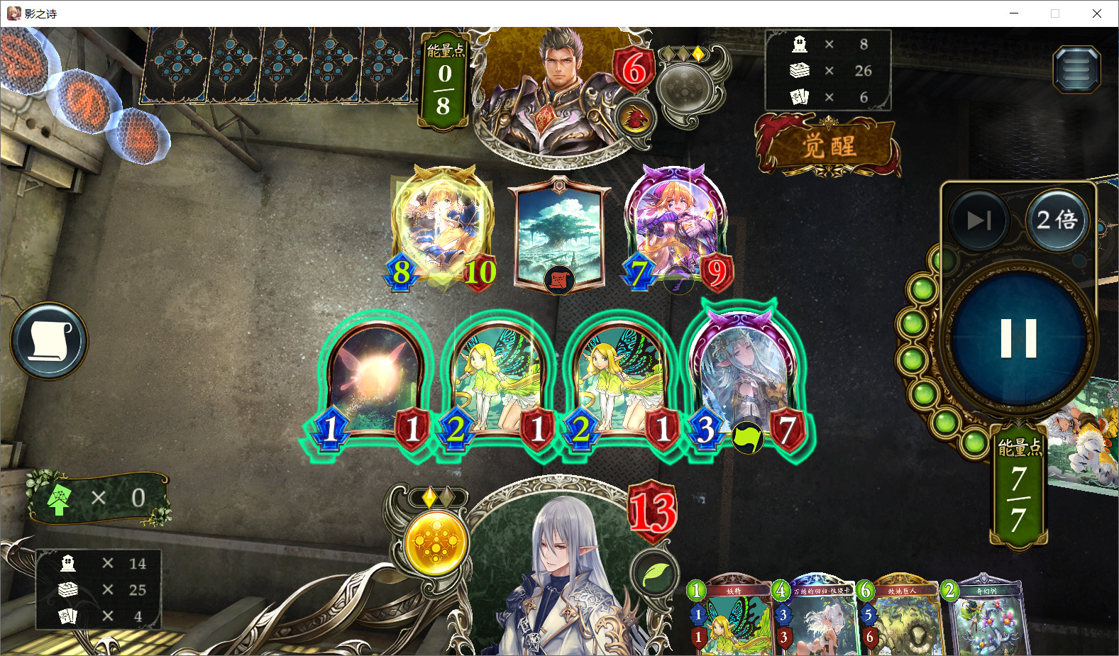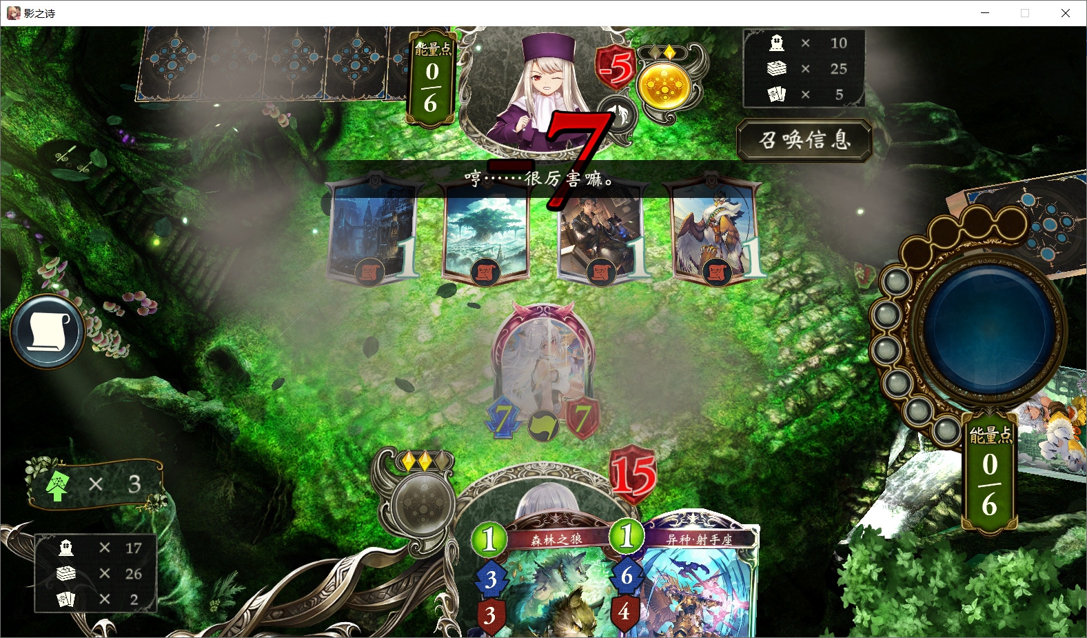 回手:森林之狼和迅风妖精,他们在不同情况具有不同优先级。在需要过牌时自然是优先使用狼,而迅风妖精的妖精萤火则可以刷连击使闪光多次出场(不刷华哥连击)。