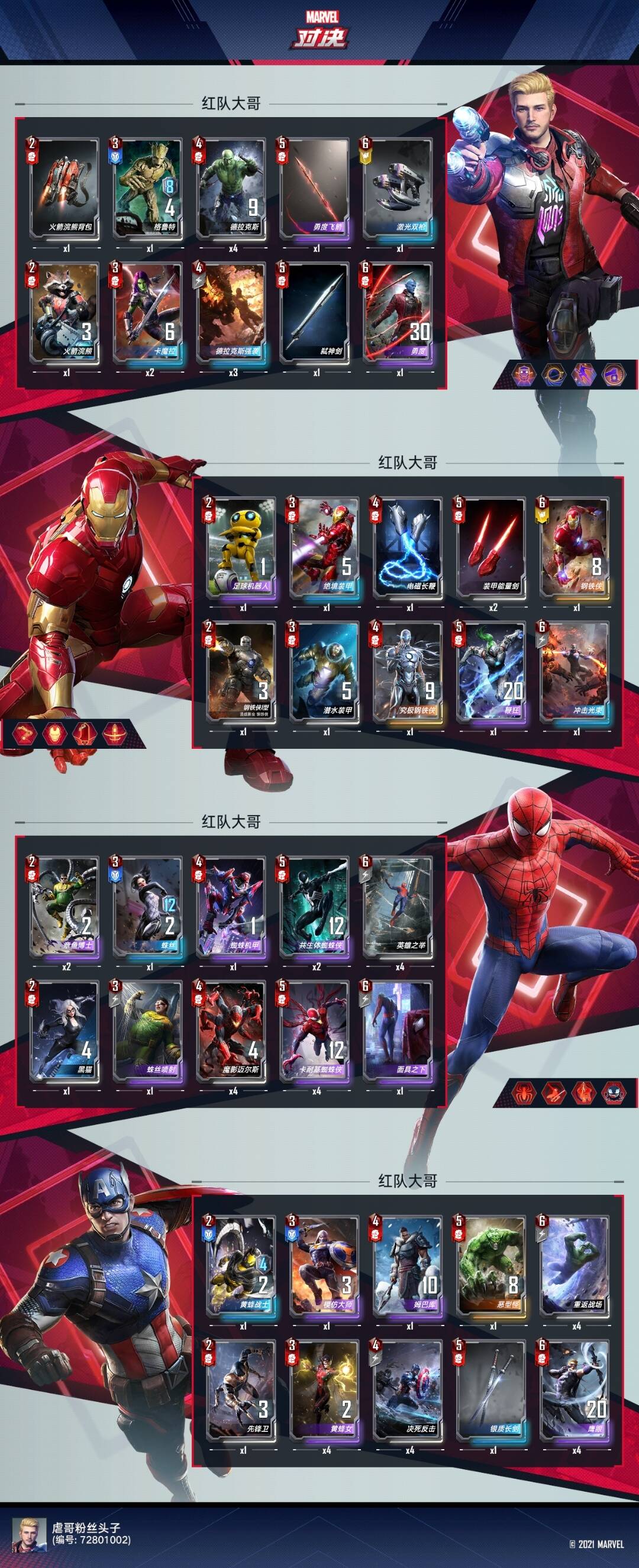 今天是《漫威对决》国服上线的第一天,战场中涌入了很多新老玩家。由于国服很多卡牌进行了重制,加上新手很多卡牌无法集齐,使得很多国际服的经典套路无法复刻。我作为漫威对决国际服老咸鱼,今天也在国服进行了不少尝试,最后选择了这一套较为容易上手而且比较适配国服环境的红队大哥流。我用这套卡组比较顺利的上到了白金段位,而且保持着较高的胜率。
