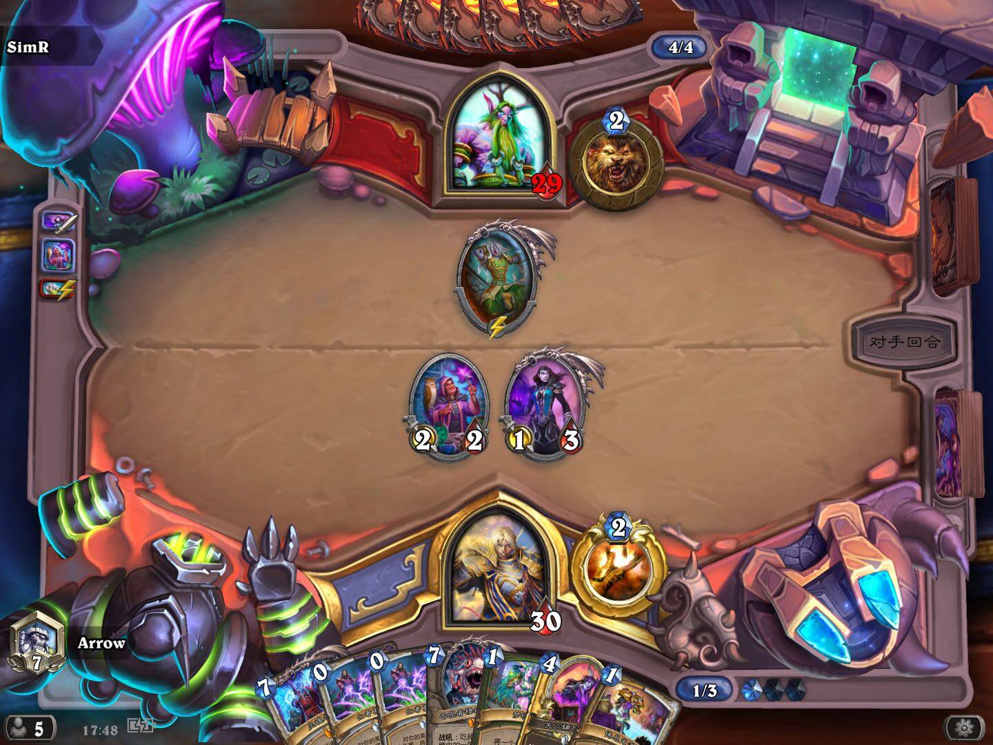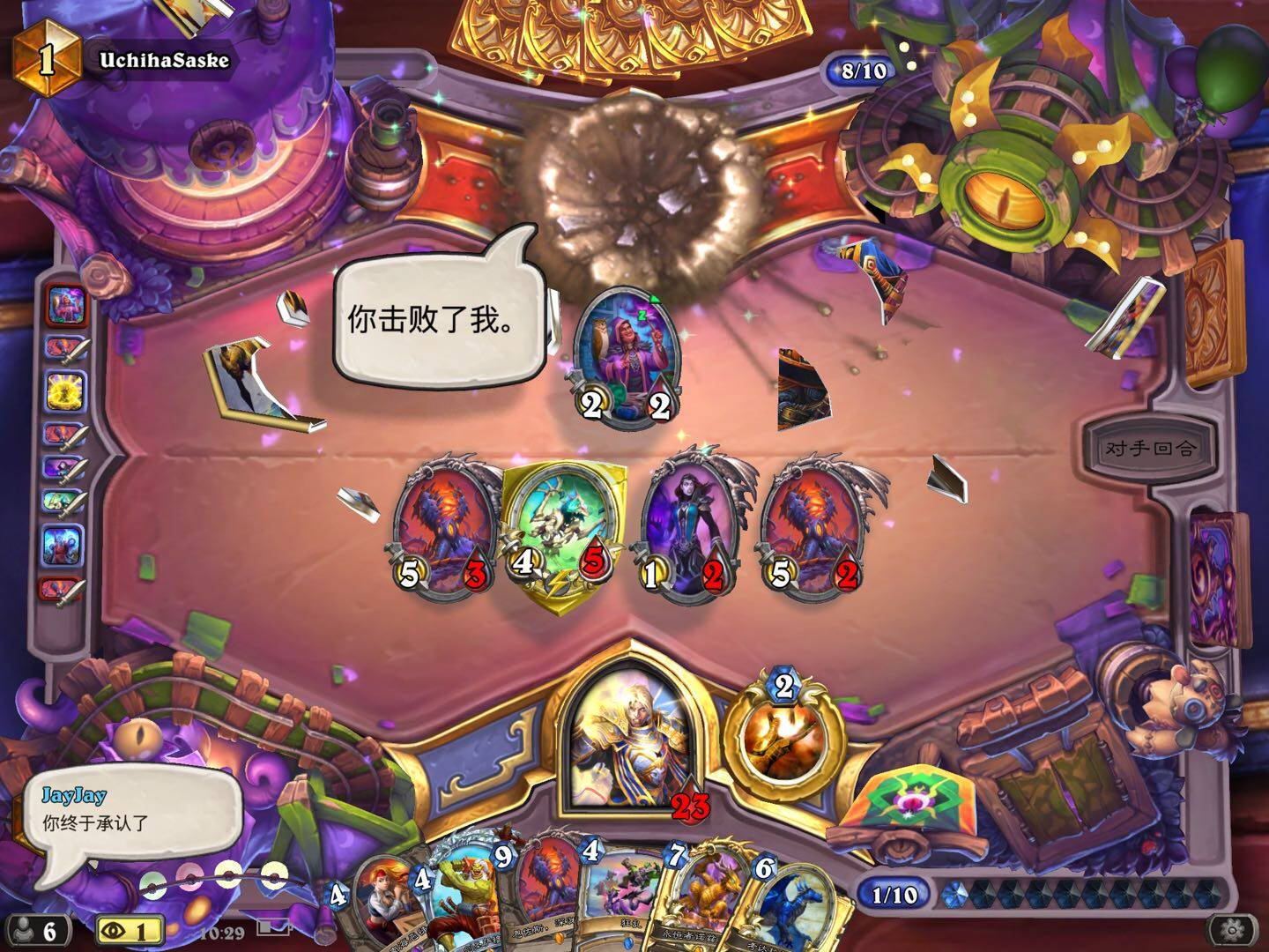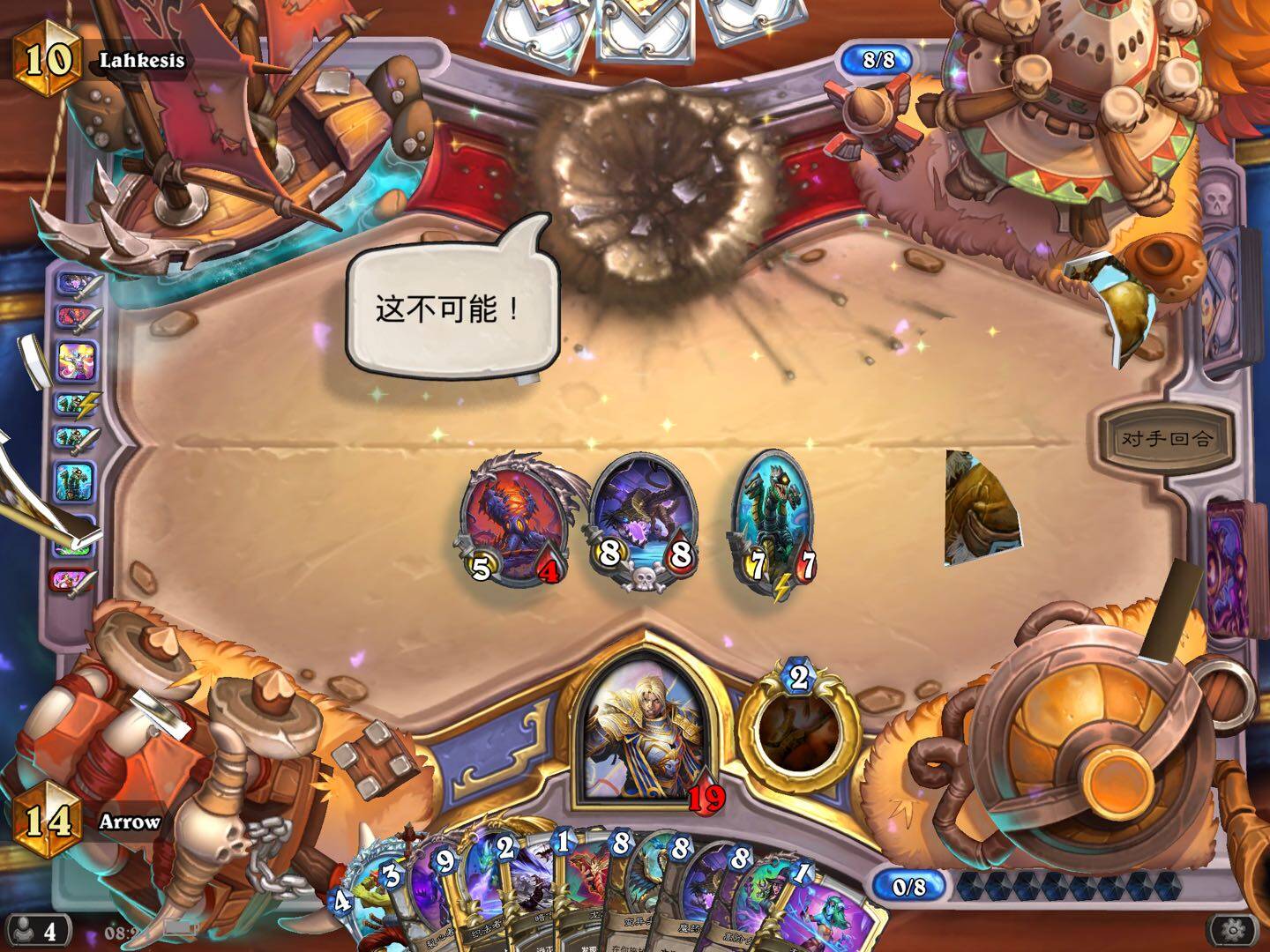 防战:怎么贪怎么厚就怎么玩,不过要小心南海海盗爆牌,此对局中我们是绝对的进攻方,虽然战士解牌很多,但他过牌手段有限,而且甚至为了疲劳会硬不过牌,所以我们不断的压场面,是极有可能踹死对手的。