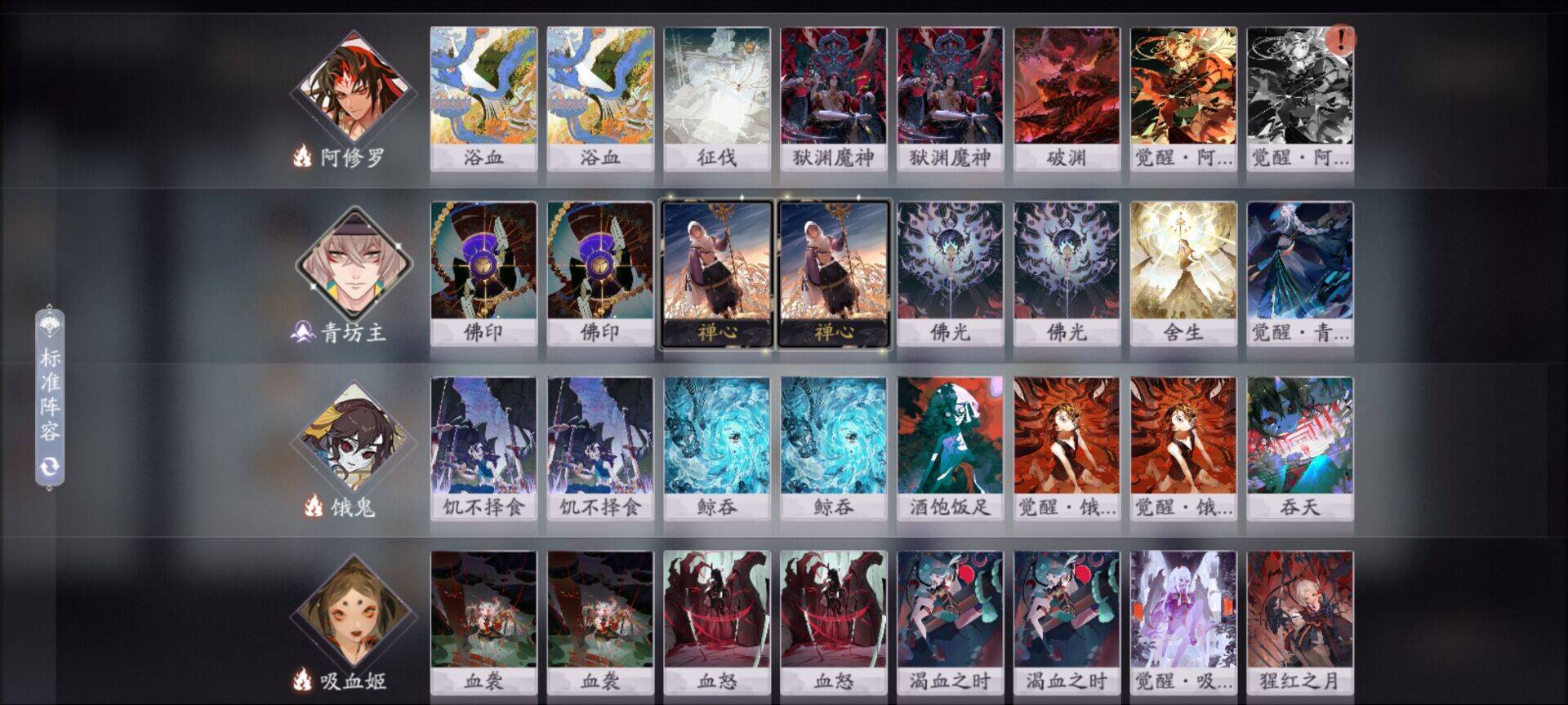 在式神的选择上,我选择阿修罗作为主c,中期依靠二勾形态巩固场面,三勾依靠觉醒完成斩杀;