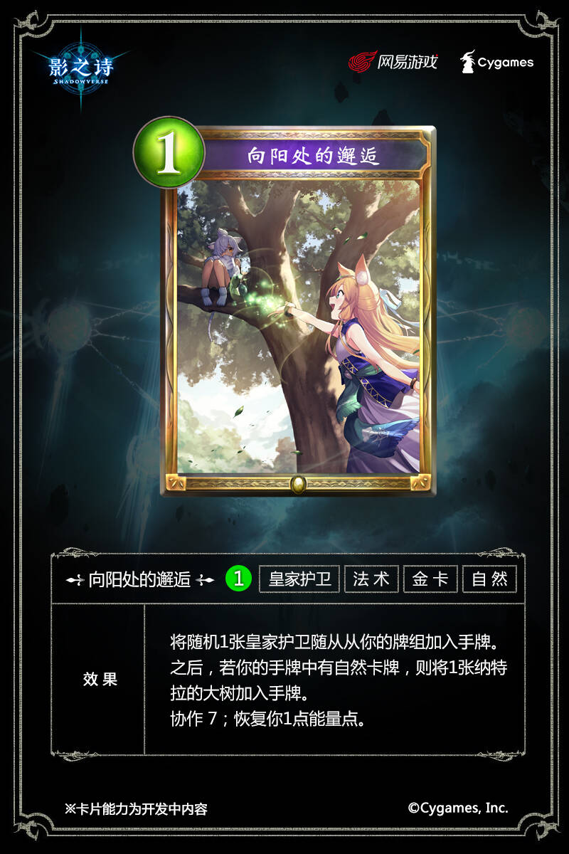将随机1张皇家护卫随从从你的牌组加入手牌。之后,若你的手牌中有自然卡牌,则将1张纳特拉的大树加入手牌。