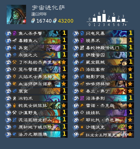 相对控制性的萨满来说,这套卡组的抉择点较少,铺场以及适当解场后全部走脸即可。这套卡组的卡位还是比较宽松,这里仅起到一个抛砖引玉的作用,各位老哥可以根据环境情况和个人理解进行更改。