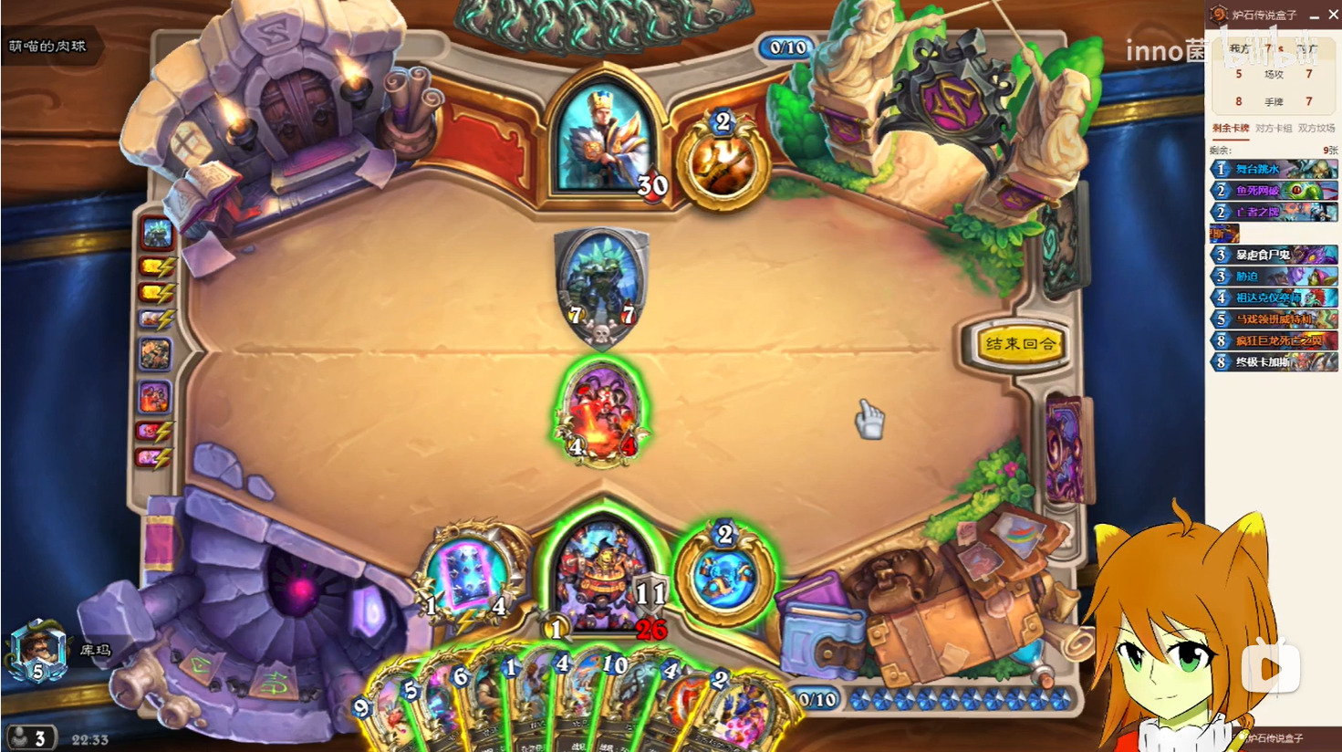 虽然这里神抽恩佐斯再铺了一波肉肉彻底压死对面,如果没抽到,我还有雷诺和两条0费龙可以铺场,大表哥留作一个返场牌。