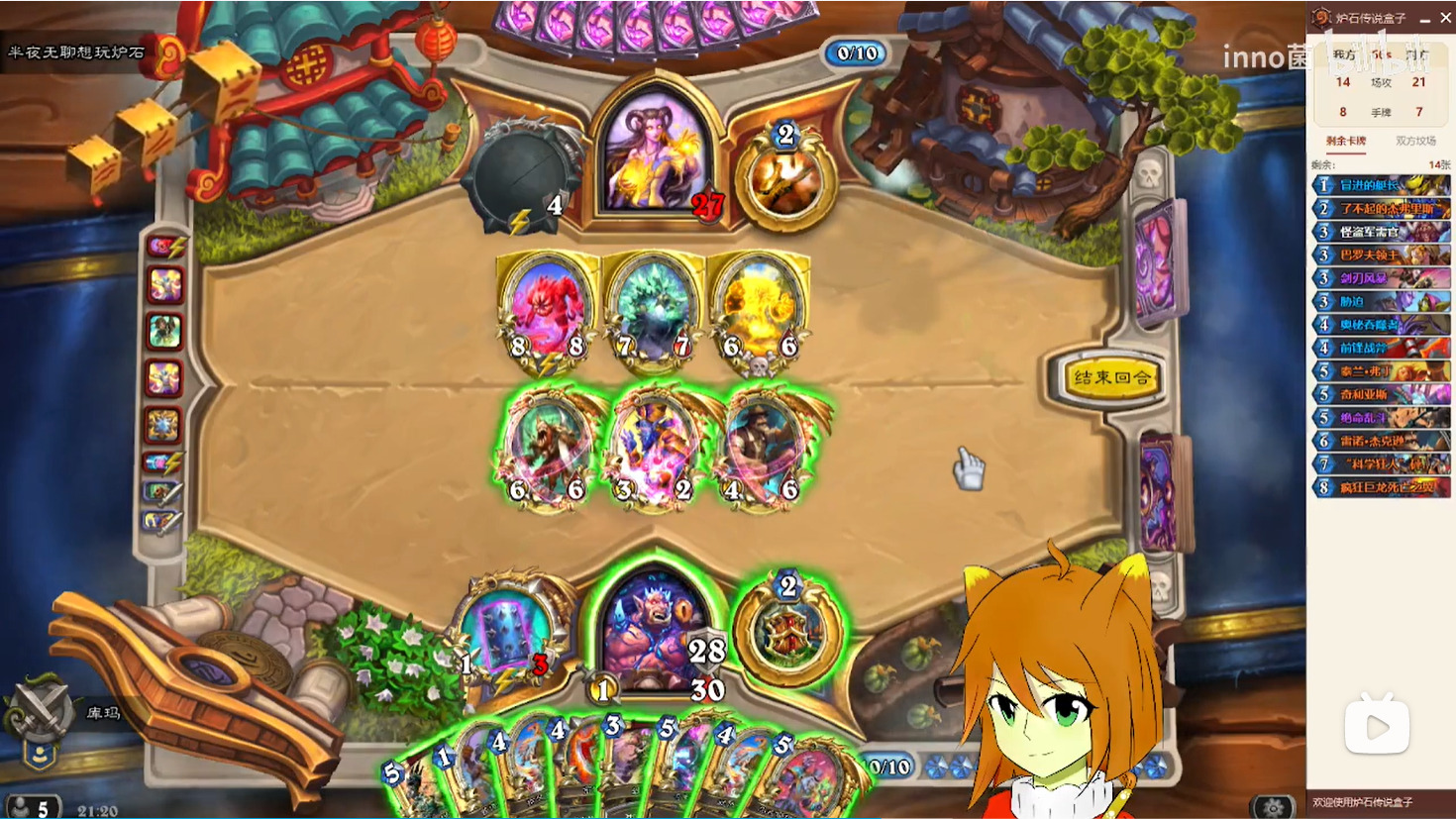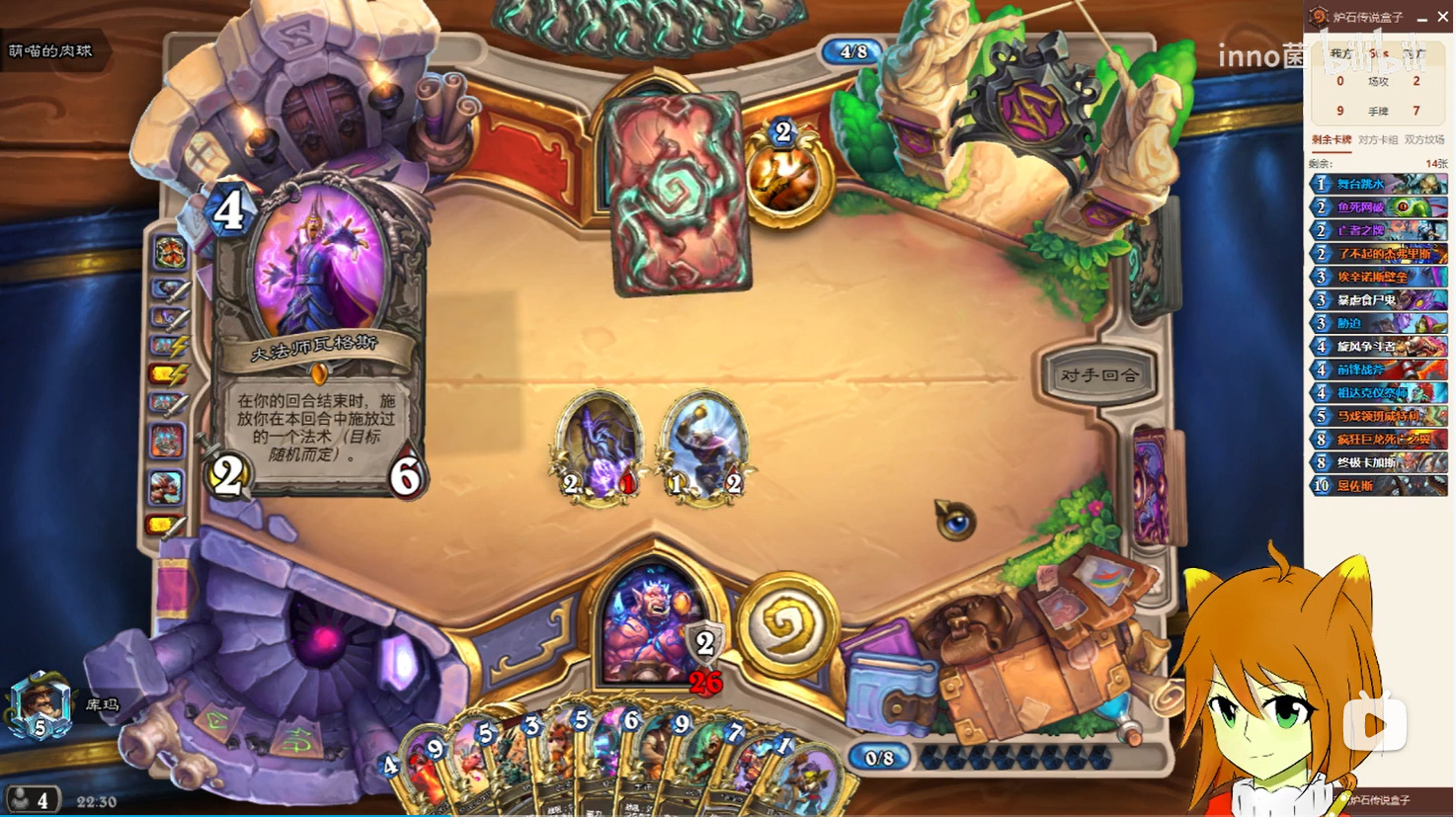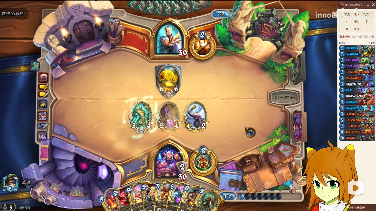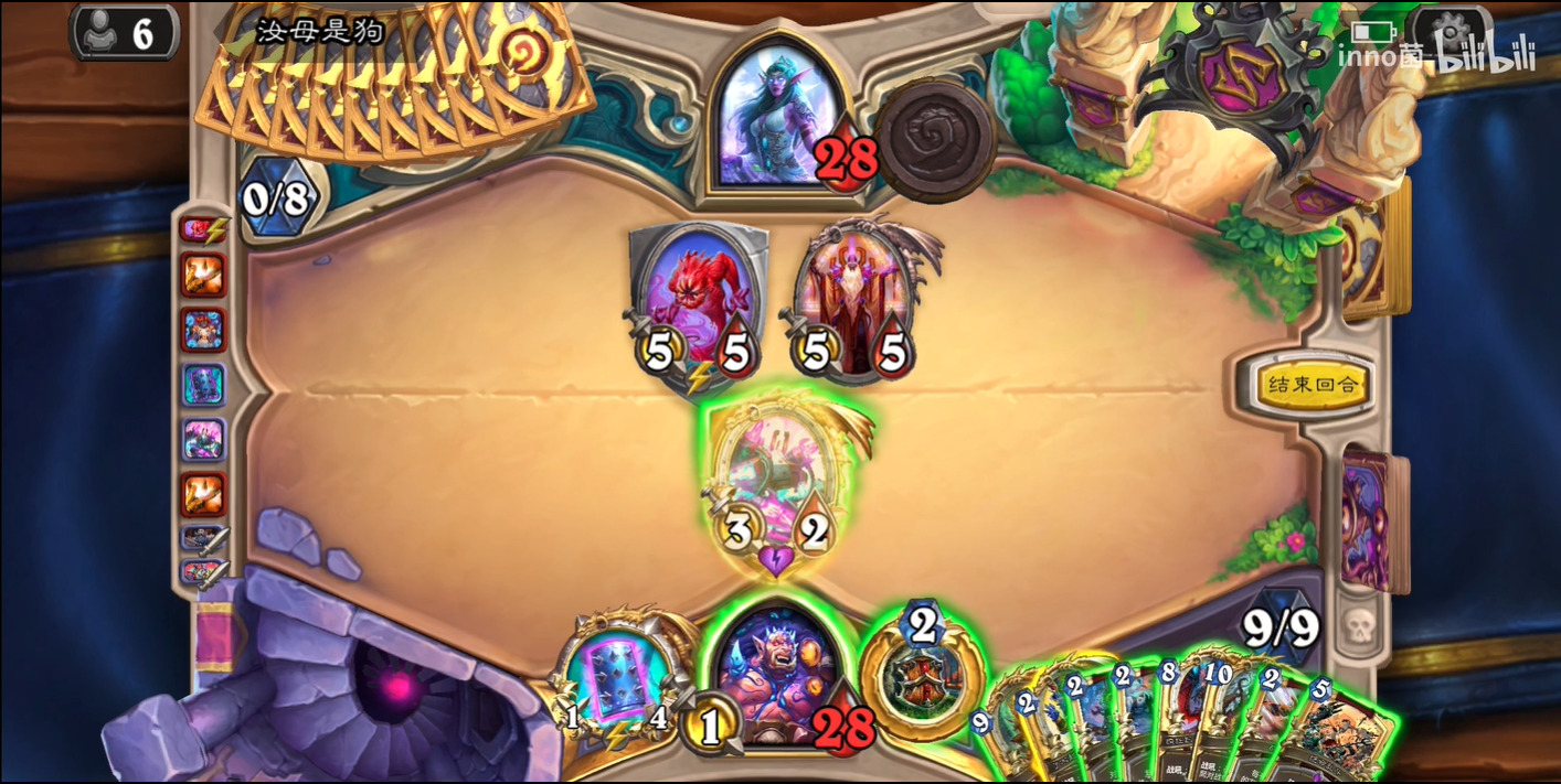 (6)对手8费终于开始使用暗影精华了,暗影精华出了戈霍恩之血,回合结束戈霍恩之血出了维纶;