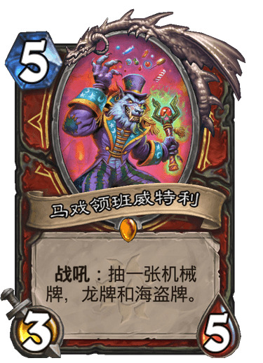 机械随从中奇利亚斯同时具有突袭属性,能够被城镇和舞台跳水检索,如果带了奇利亚斯,最好再带张机械以避免检索冲突而导致无卡检索。我个人推荐1-2-2的构筑模式:即一个种族带1张,另外两个种族带两张,不能太多也不能太少。一是尽可能避免检索对象都已经上手的尴尬情况,二是基本能够做到对单卡的定向检索。在我常用的构筑中海盗只带了艇长,机械带了欧米茄毁灭者和奇利亚斯,龙带了死亡之翼和红龙女王。艇长可以作为小的aoe用,配合战斗怒火继续过牌;欧米茄毁灭者和奇利亚斯都是单解;而死亡之翼是一张能够返场站场的群解,红龙能紧跟8费大表哥的场面压制把压力续上。这些牌针对性不强,也就不会那么卡手。