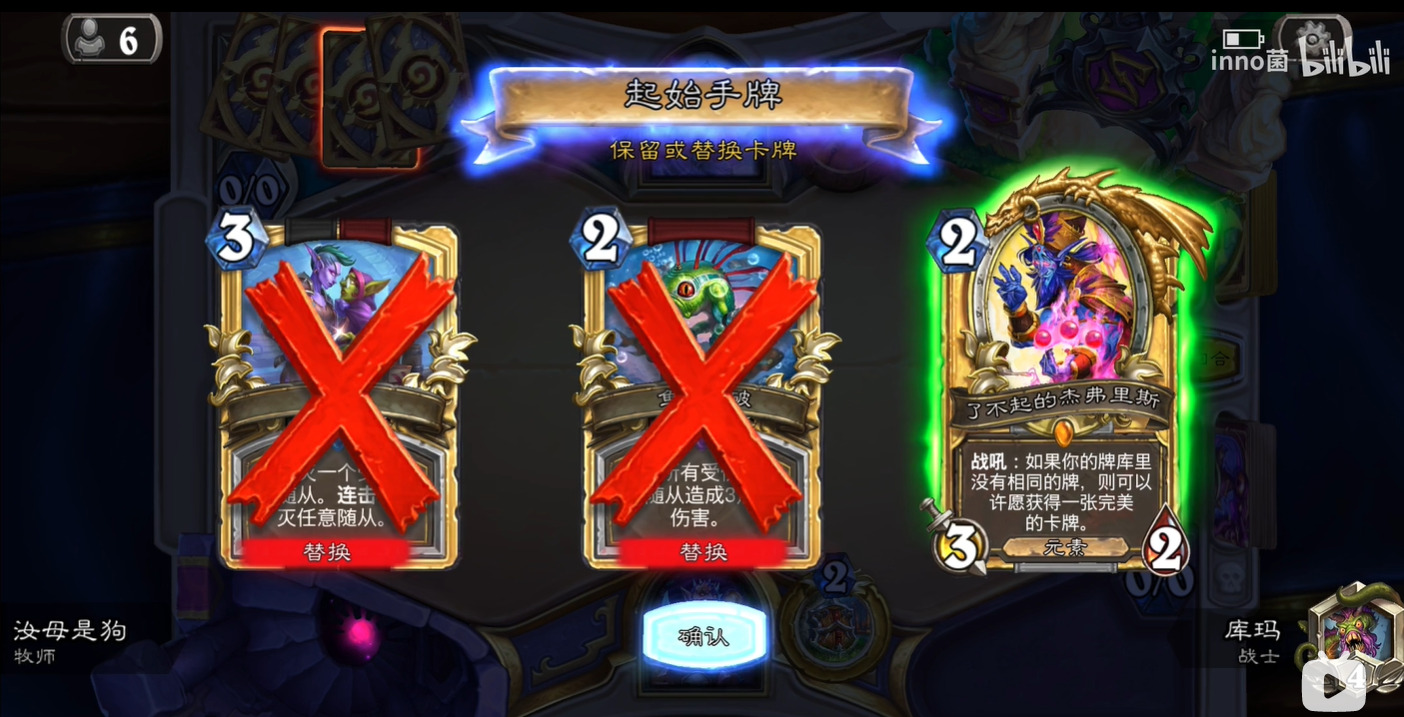 那么对宇宙战而言,大哥牧什么样的场面是最令人绝望的呢?当牧师暗影精华出了大法师瓦格斯,回合结束瓦格斯释放暗影精华出戈霍恩之血。接下来是战士的6费回合,这个场面没有亡语嵌套,姐夫是不会给蛙的,解牌位会出现的是毁。