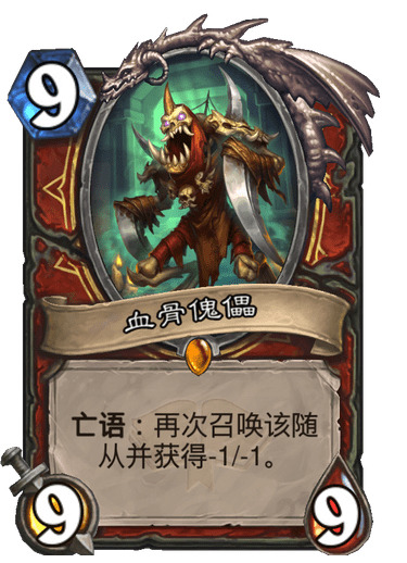 血骨傀儡(以下简称肉肉)强大的亡语效果,把赖场写得明明白白。除了特殊解场手段,仅靠着“消灭”“造成XX点伤害”的解牌是很难将肉肉解完的,更不要说是一两个回合内了,但肉肉的问题在于没有其他关键词了(突袭、嘲讽、吸血),所以当我们拍下肉肉后,会触发其隐藏效果——使你的英雄获得嘲讽。铺场生物的攻击全部打脸,宇宙牧的技能伤害会全部走脸,所以对于我们拍下肉肉的第二个回合,操作基本都是交一个大解(乱斗、领主艇长、姐夫等)来处理场面或者交一个大血瓶(雷诺、欧米茄毁灭者奇利亚斯、终极卡加斯)。如果手里没有后续回合可能用到的牌,那么当前回合可能并不适合去拍下肉肉。