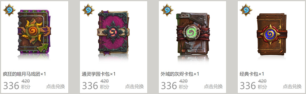 积分商城里和炉石相关的物品如下(以及战网改名服务),可见并不包括最新的贫瘠之地,更不可能包括即将到来的新版本(新版本也应该不可能在13日前上线)……但说到新版本,新版本的预购按照惯例应该是要在发布会当天开启的,那就可以赶在13日前,买预购的话应该能蹭到双倍积分的福利。