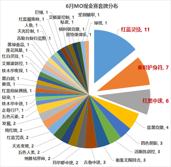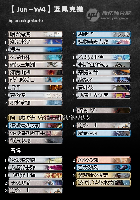 6月26日的挑战赛冠军是蓝黑克撒,虽说是掺了红,但也只是带了备牌的两张风化侵蚀,因此整体来说也还是蓝黑色,本周的其他蓝黑克撒也基本上是这个版本,与上周的蓝黑克撒也基本类似。