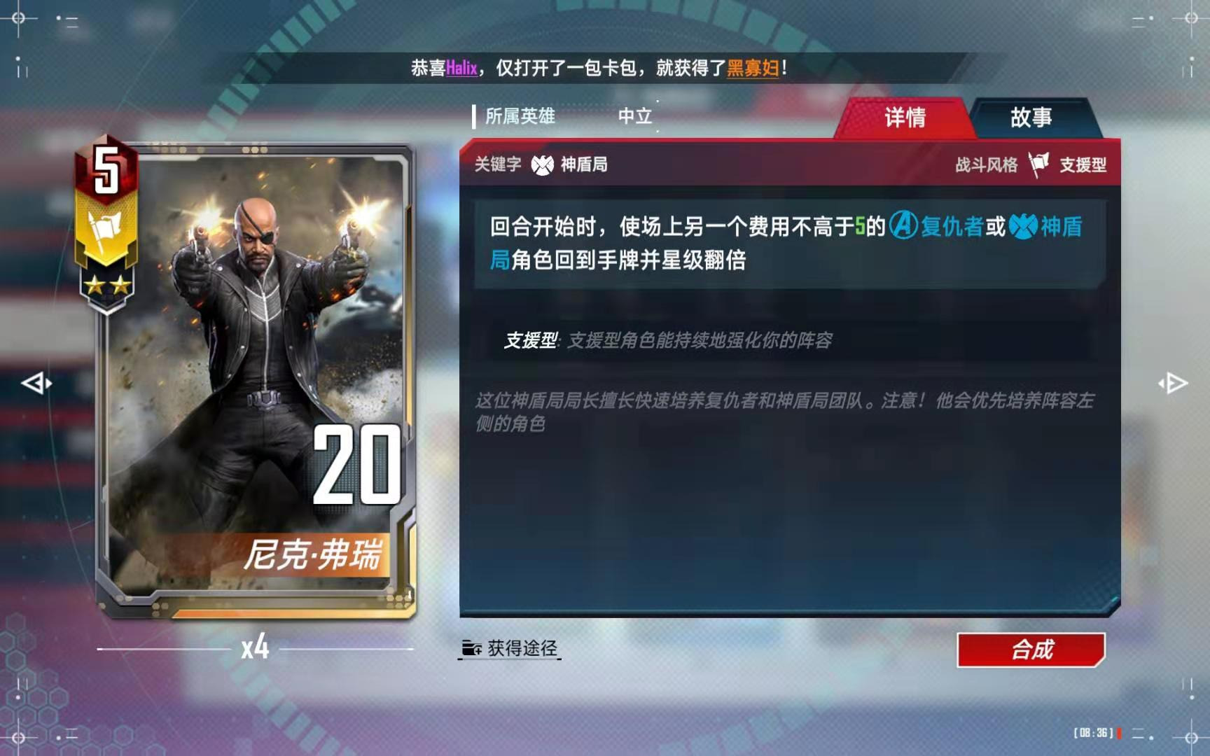 本卡组的天才创造一定要在送四宝石的前提下使用,就为了找黑寡妇和卤蛋。本技能一般选择在第五回合使用,因为第四回合都没有经济支持购买。