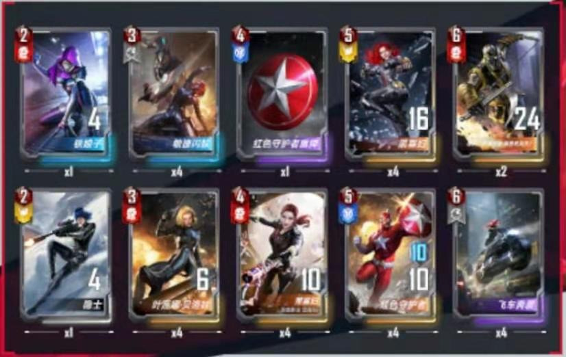 如果你的托尼不够四张,则卤蛋带三张比较合适,三张卤蛋同时升级红寡妇和黑寡妇,效果更好)