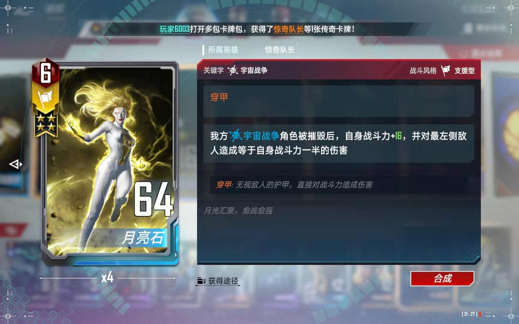 (3)本卡组后期还有“玛威尔”和“月亮石”补强阵容,卡组的上限是非常高的,月亮石还是穿甲伤害。