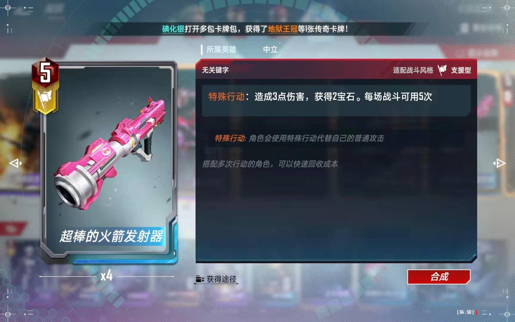 (4)、尽可能多的给随从佩戴“超棒的火箭枪”,这个武器很重要很重要,每回合比对手多30宝石可以提高本卡组的绝对上限,这个游戏本质上是玩经济,你有钱了想买什么卡就买什么卡,想什么时候升级商店就什么时候升级商店,后期每回合的宝石经常是花不完的。