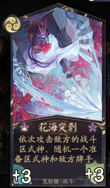 花海突刺:新版紫岩提高获胜速度的关键。后期强大战斗能力配合紫岩的身材叠加。让我们使用花海突刺就能立刻击垮对方,不过大家注意荒骷髅基础攻击只有2,我们尽可能配合觉醒、形态、道行初音旅等能提升身材的牌使用最好。