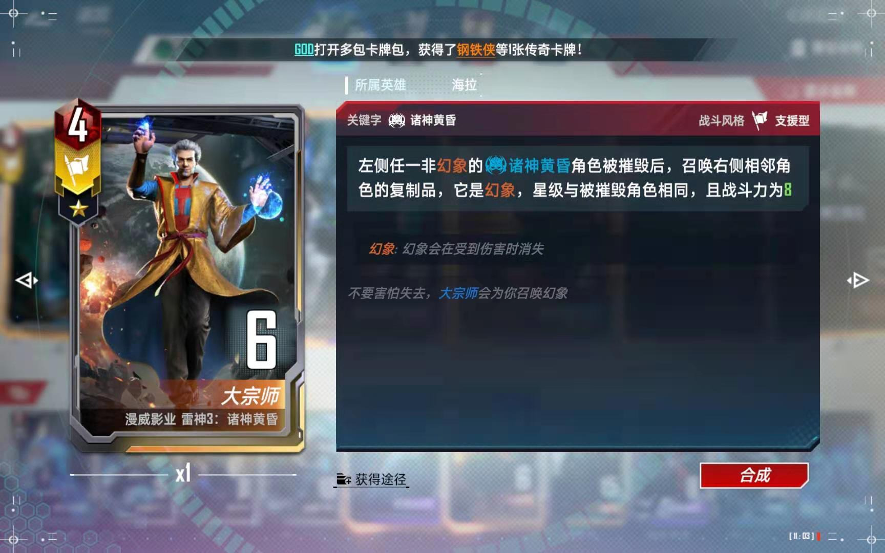 (1)采用海拉、仙宫、钢铁侠作为主力英雄,前期都是这个游戏最能打的卡牌,前期比较给力;