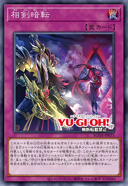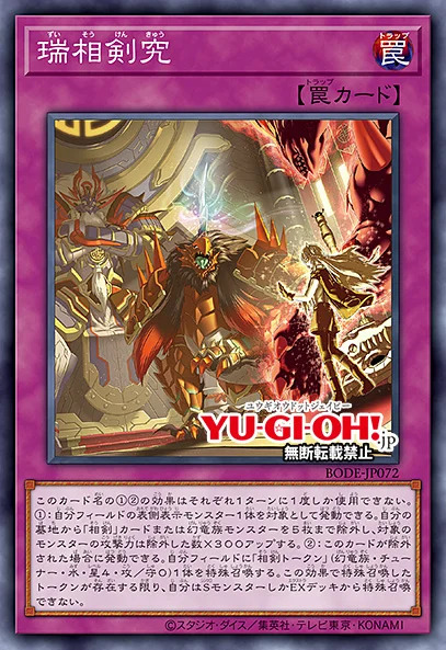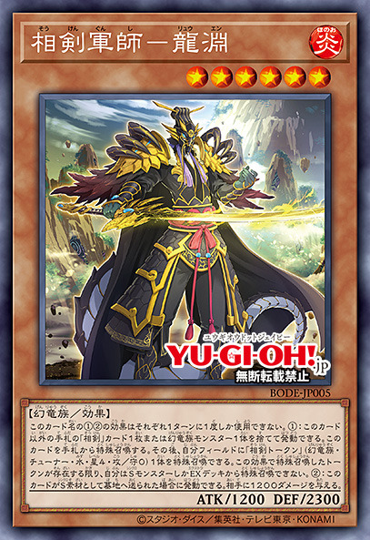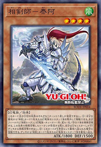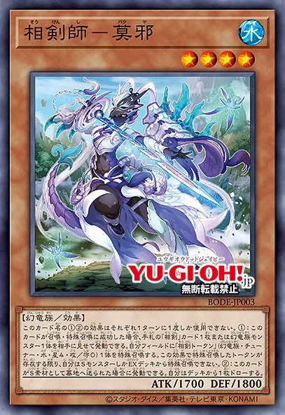 ①:把这张卡以外的手卡1张「相剑」卡或者1只幻龙族怪兽丢弃才能发动。这张卡从手卡特殊召唤。那之后,可以在自己场上把1只「相剑衍生物」(幻龙族·协调·水·4星·攻/守0)特殊召唤。只要这个效果特殊召唤的衍生物存在,自己不是同步怪兽不能从额外卡组特殊召唤。