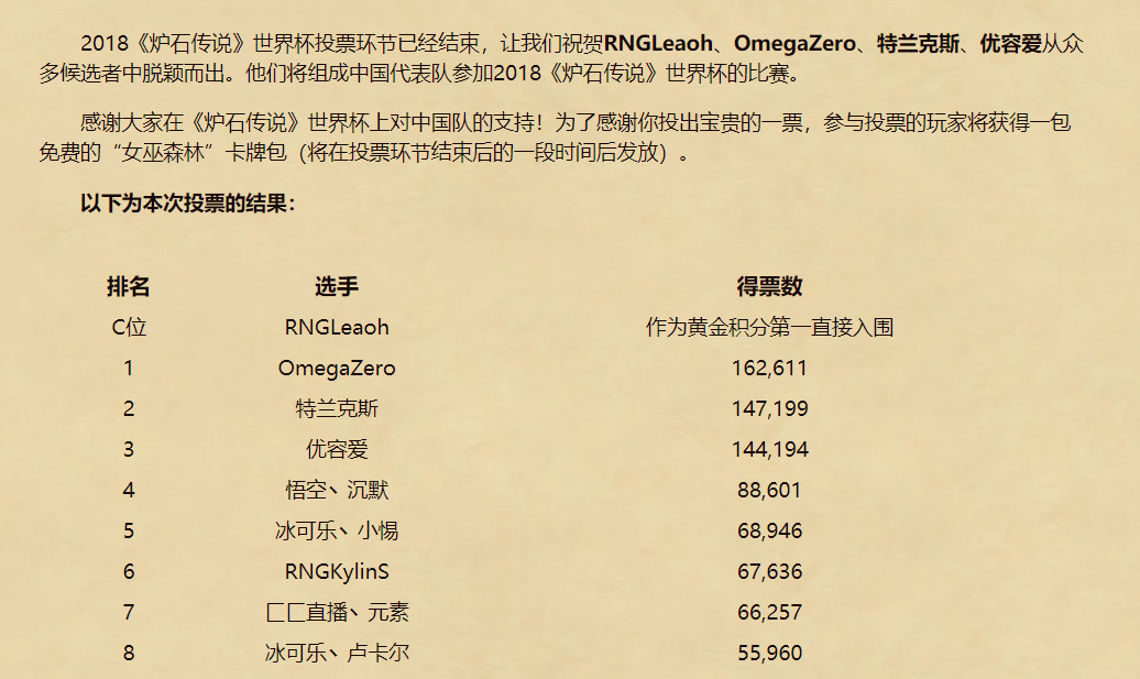 时间来到2018年,彼时的CN炉石正经历着至暗时刻,而一场转机似乎也在那时出现——炉石世界杯。2018《炉石传说》世界杯包括了48支来自各个国家和地区的队伍,中方四名选手为黄金积分第一直接入围的leaoh+大家票选出来的三位选手:Omegazero,特兰克斯,优容爱。