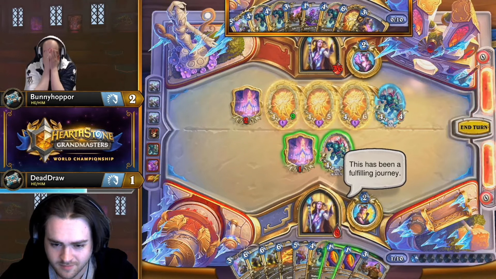 Bunnyhoppor的这个冠军同时也是——这话听着反直觉,但这确实是欧洲炉石在大师赛时代的第一个总冠军(上一次2018年hunterace)。欧洲炉石这几年显然没有退步,只是在总决赛舞台上总有东方高人辈出,而这次他们终于夺冠并且四强占三、提前会师,甚至可以说这届欧服选手整体表现都不错。总决赛的画风终于和巡回赛/季赛相符了一次。