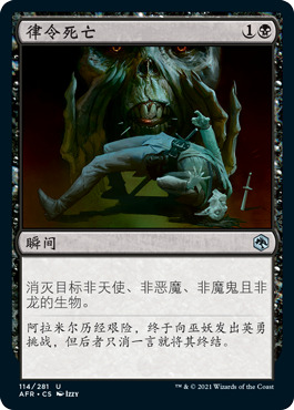 单看自己身材的话差点意思,不过这系列久违的回归了判刑+牺牲的配合,在某些红黑套牌里,它甚至可能是关键组成部分。