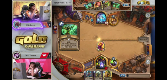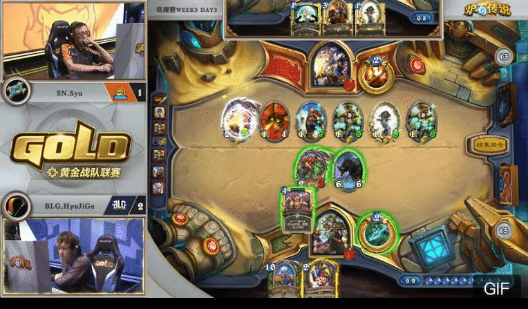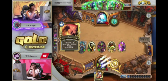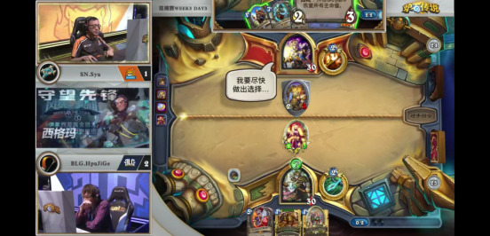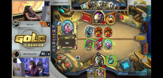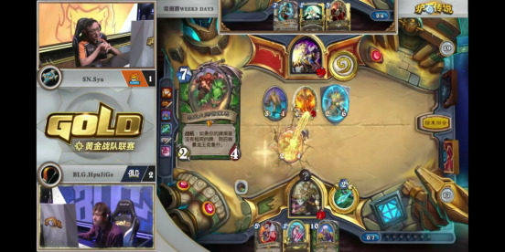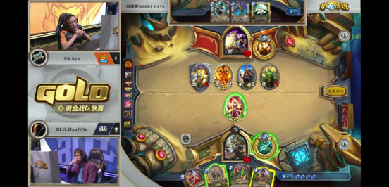 这次是对战双方是SN.Syu的心火牧和BLG.HpuJiGe的宇宙猎。开局普及哥展开顺利奥秘守护者接捕鼠陷阱绕过了被对手硬币受伤的托维尔人白吃的机会,Syu为了防止吃冰冻陷阱在长考后选择用尼斐塞特仪祭师奶满受伤的托维尔人,借着2/6墙的保护下回合再处理奥秘。