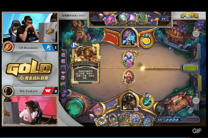 雨天牛在明确没有办法用呼啦处理祖尔金战吼的召唤的5/5的情况下选了呼啦解场,爱队也在下一回合续上压力打出祖尔金,雨天牛交出匣子解场,不料开出炎爆砸了自己的脸进入了危险的10血,最终虽然是解干净了猎人的场面还立了两个2/3的墙,短时间内没法取胜且缺乏回复的法师最后还是死在了猎人剩余的解场法术和火车王的脚下。