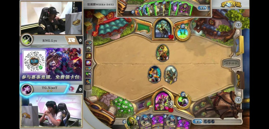 来自RNG.Lys的节奏贼对阵TG.XiaoT的动物园,。开局手牌平凡之路双背刺军7,对动物园有着恐怖的压制力,而小T则展现了他对这个对局独到的理解,他主动换掉了动物园公认最棒的1费生物——烈焰小鬼,全力去找113的生物来防背刺。