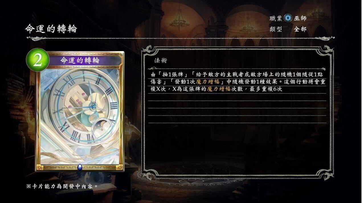 由「抽1张牌」「随机给予敌方主战者或1个敌方随从1点伤害」「发动1次魔力增幅」中随机发动1种效果,这个行动进行X次。X为这张牌的魔力增幅次数,且X最多为6。