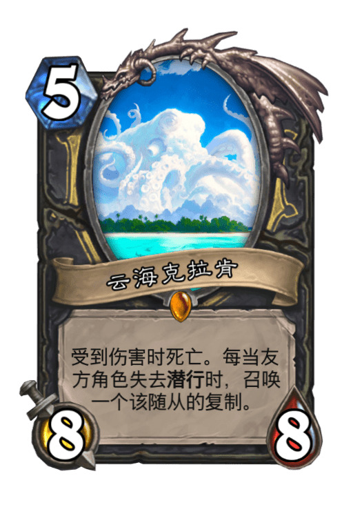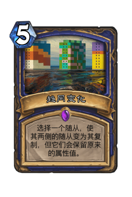 - 一张粗暴的无何有式单卡,其实炉石里这样的卡不太多(根本就没有),其实也可以加个消灭所有随从这样的效果来让它的泛用性更广一些。
