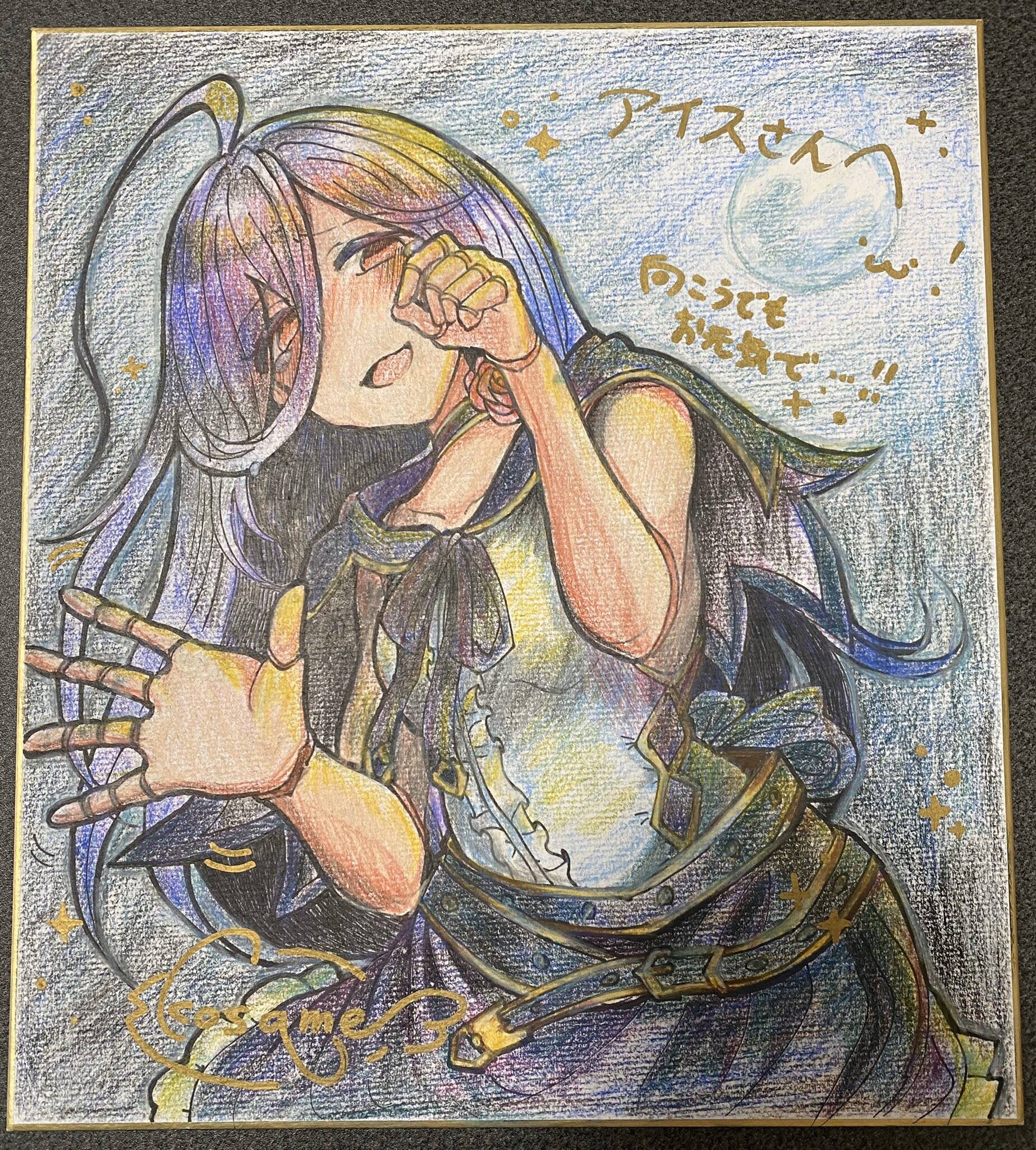 每次见面的时候我都找她要色纸,有手绘的有板绘的迄今已经有很多次了,详见下: