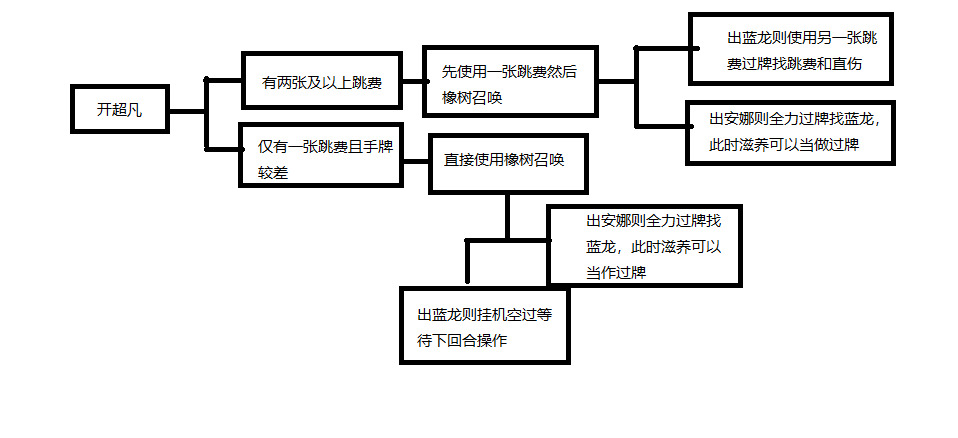 A:由于牌库中有两张核心随从:安娜科德拉和玛里苟斯,橡树召唤拉出两个的概率均为50%。但是如果拉出蓝龙则会导致没有费用无法操作。因此,应该根据我们的手牌进行如下判断。其中需要注意的一点时,下安娜科德拉之后自然研习可以用来使一张非自然法术变为0费,注意不要浪费这个减费。