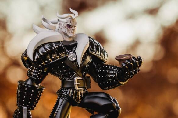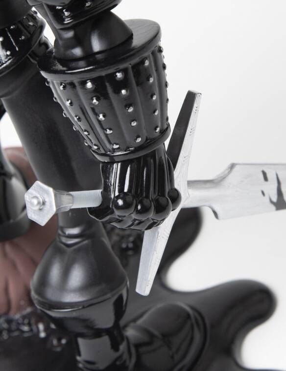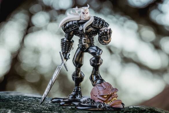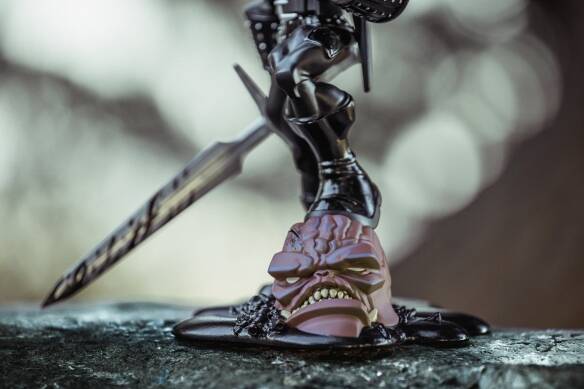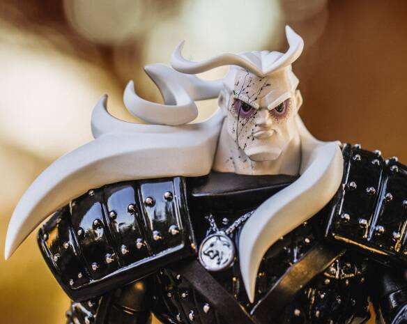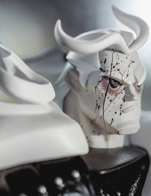 这款雕像没有采用之前同类作品那种写实风格,而是进行大胆演绎,让杰洛特与怪物的造型都偏向棱角分明的肌肉动画风。而杰洛特的肤色则与发色完全融合在了一起,搭配溅在脸上的怪物血与凶狠的神情,这款雕像显得极具力量与暴虐感。
