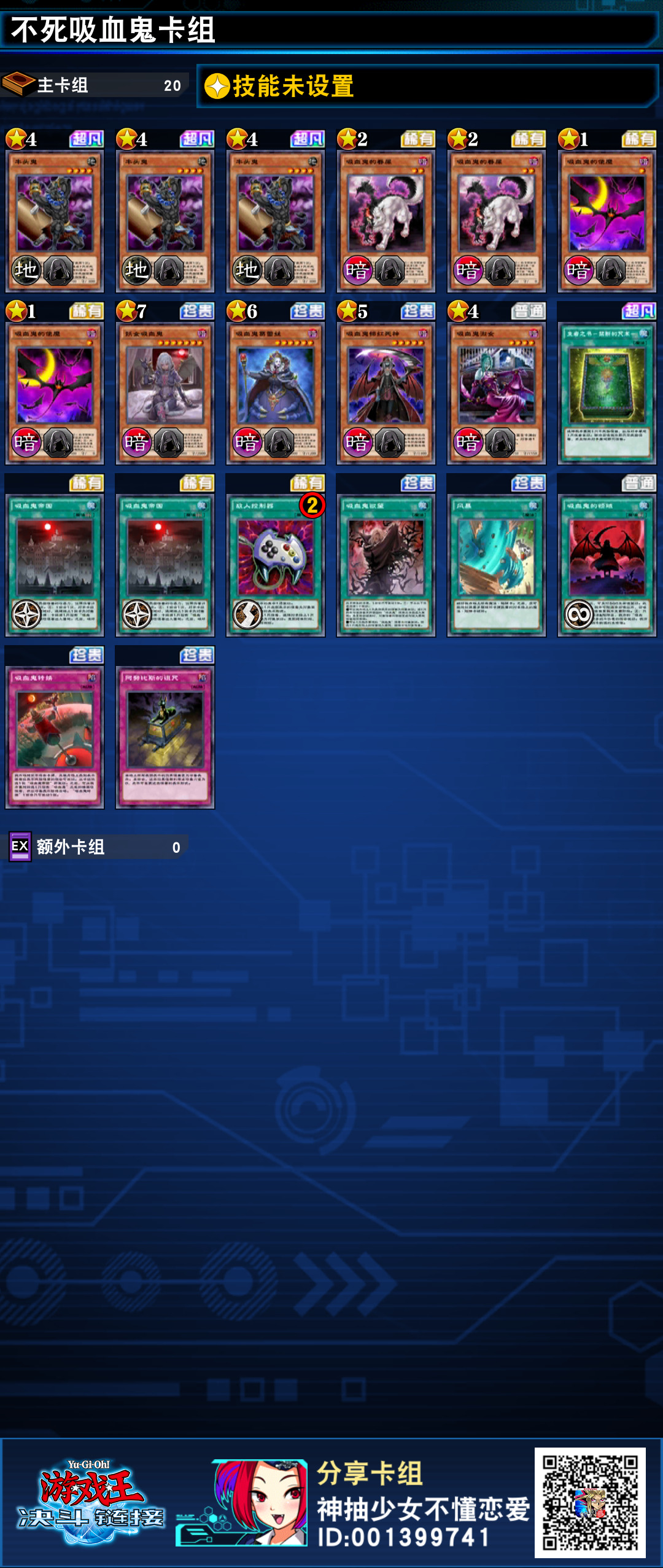 最后,说一下人物技能。带基斯的【控制】和王样的【注定一抽】是比较常见的选择,吸血鬼由于很多效果的发动都需要烧血因此很容易使用生命值消耗后触发的技能,基斯的技能可以用一张手牌换对面一张盖牌,且因为是人物技能所以不入连锁,对手没法响应使用盖牌,对于系统庞大几乎没法带风的吸血鬼卡组来说相性最高。