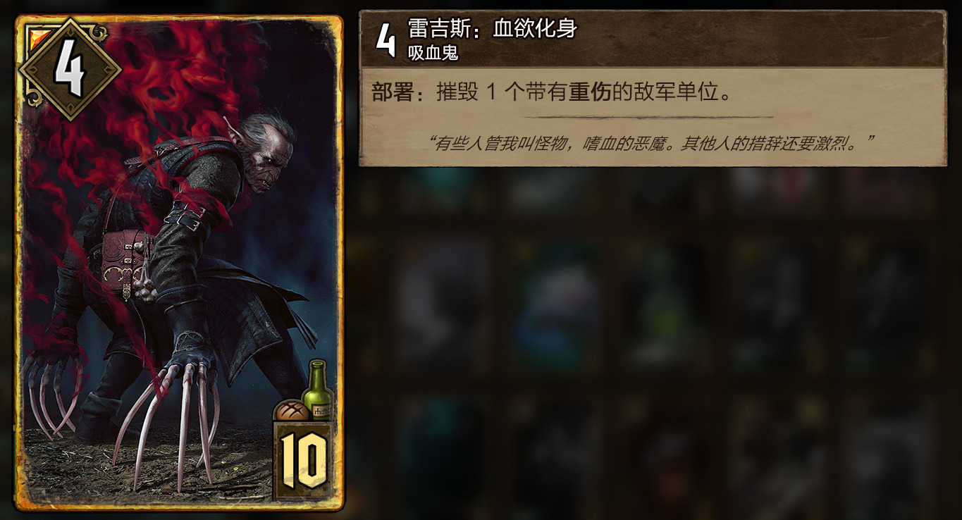 或许应该归为怪兽牌,吸血鬼体系需要这样一张大解,不过是中立的话其他阵营只要能出重伤就都能用,原技能就是用10p的高费卡位打一张北风炸弹,属实离谱。