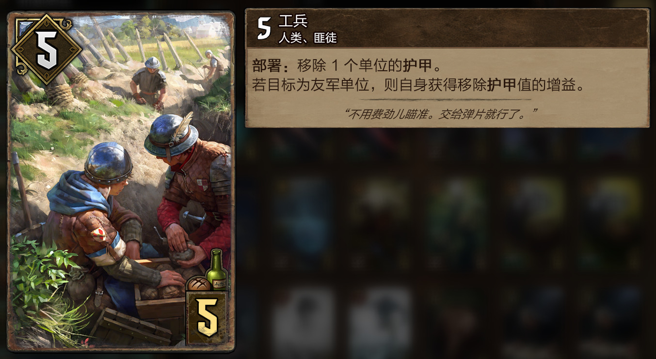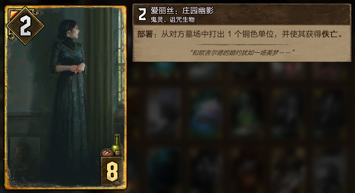 由于其原效果差不多是转移到了工兵上,就DIY了这张牌,相当于是一张反向死灵术,中立实验药品,算是增加卡池的多样性吧。我在玩群岛养信鸦整活的时候就想要一张这样的牌,用12p的蓝梦从对方墓场打一张铜卡感觉挺亏的。