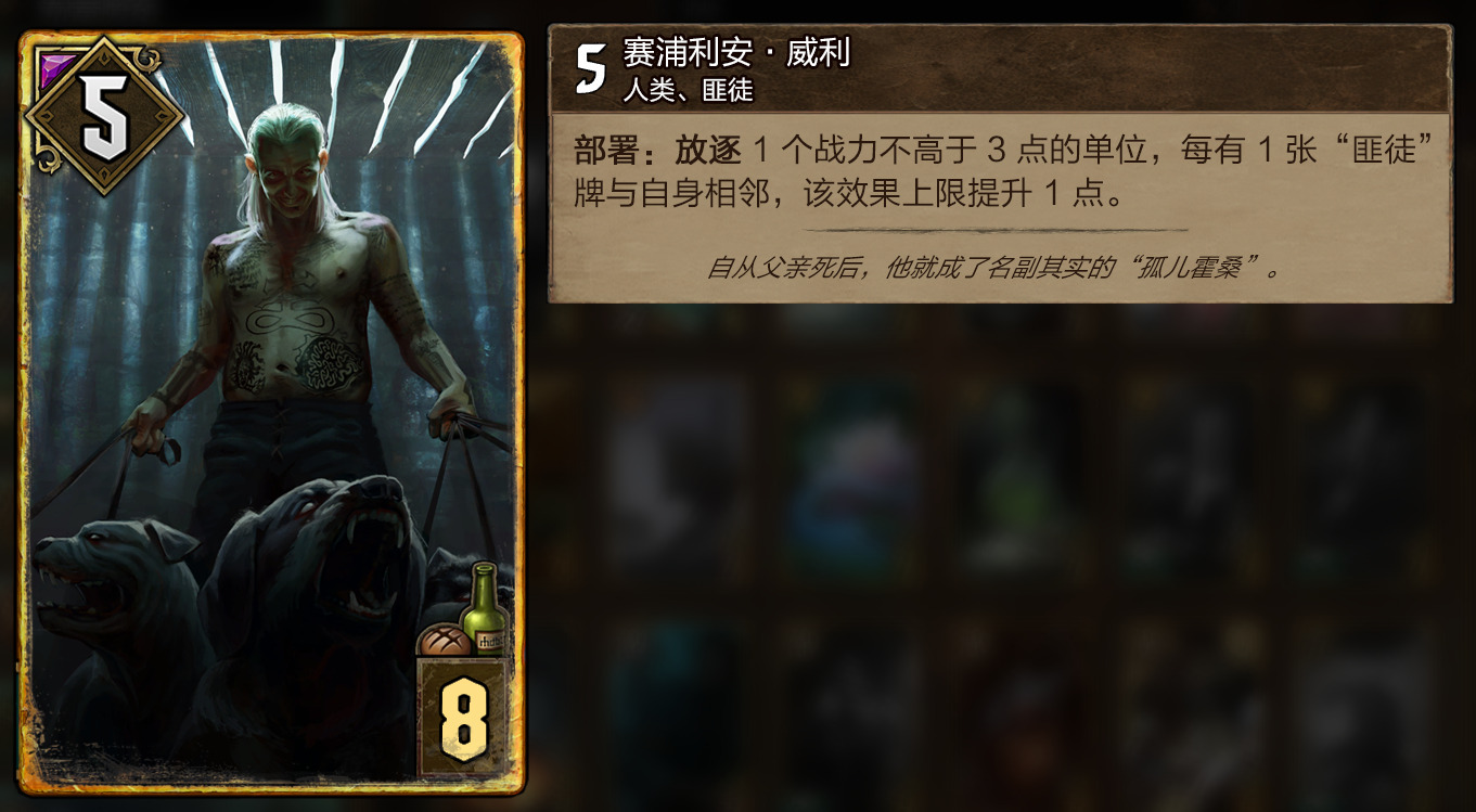 保留了其原来整活抽奖的效果,添加了与匪徒这一词条之间的关联性,只要在牌组中塞10张匪徒,就能稳定打出8p12点的节奏,缺点就是绿字比较大。
