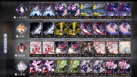 对局我们根据对方的卡组选择打法,对手是快攻时我们尽可能留下:桃花的2勾复活,犬神的战斗牌和复活,1勾的大蛇牌,要注意的是不要让大蛇的基础能力卡到我们式神的复活时机,如果大蛇影响复活时我们可以先送大蛇避免基础能力带来的负面效果。如果对方是慢速卡组时:我们就可以留下大蛇的觉醒,火取魔的觉醒,桃花的3勾全体复活,犬神的战斗牌尽量留恶即斩打伤害就行,当然1勾的大蛇牌一样很关键不管打快打慢时都能保证我们蛇魔的灵活性。
