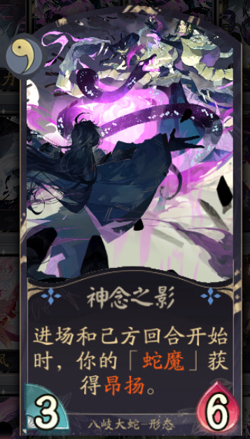 神念之影:大蛇操作蛇魔最关键的形态,让迅捷的蛇魔获得昂扬,从此解除蛇魔对我们出击频率的影响,让多个蛇魔同时进攻。