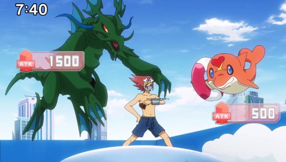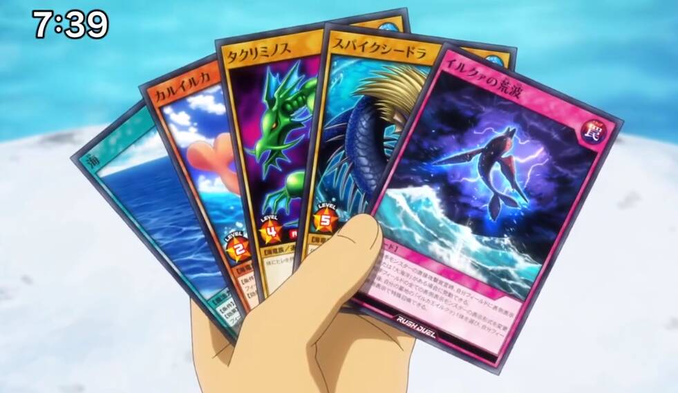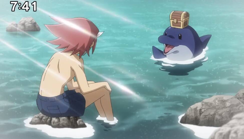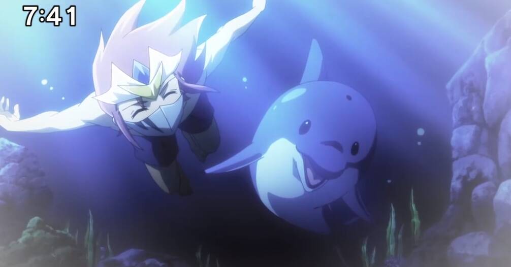 海豚给了他深海的宝藏,里面是一套水产卡组。。。。 这段剧情应该是捏他了梶木渔太和游城十代。