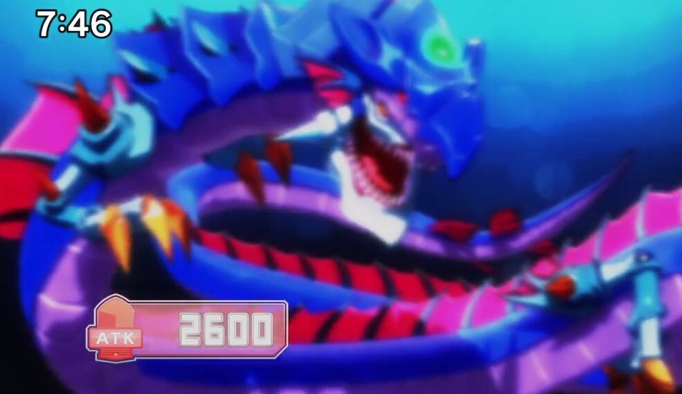攻击的时候,游仁发动海豚反击,把墓地的海洗回卡组。破坏对手攻击最高的怪兽,但是钢击龙这个回合不会被陷阱破坏。不过还有后面的效果。抓1,是海的话烧卢克500。