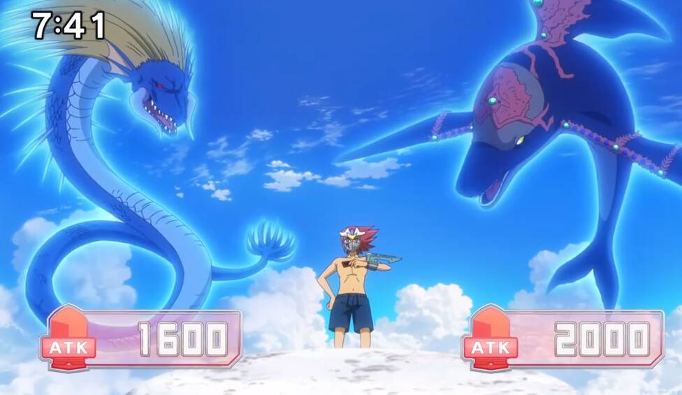 然后丢手里1张魔陷发动水之形苏生海豚王,但是攻击要下级800。全部攻击,打的卢克还剩200,。