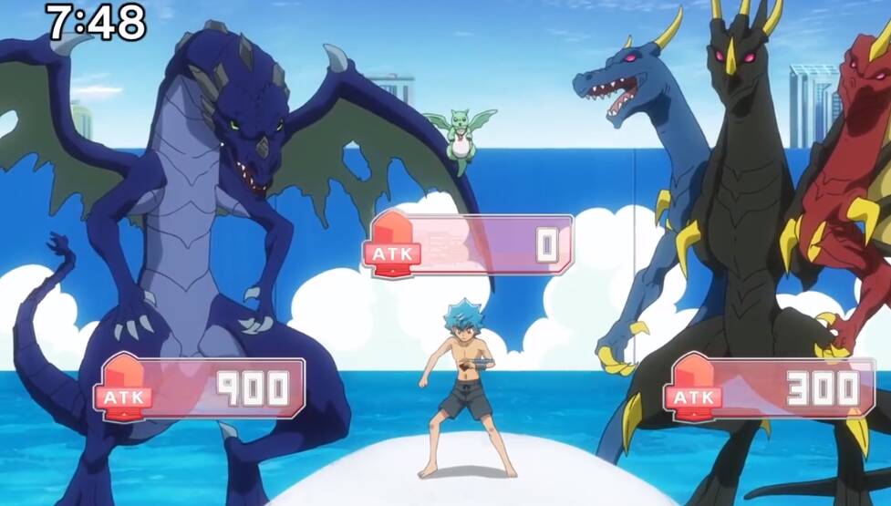 发动海豚效果抓1,然后出2个上级,盖1过。游路指出这些都是游仁新使用的卡。游仁解释了原因。