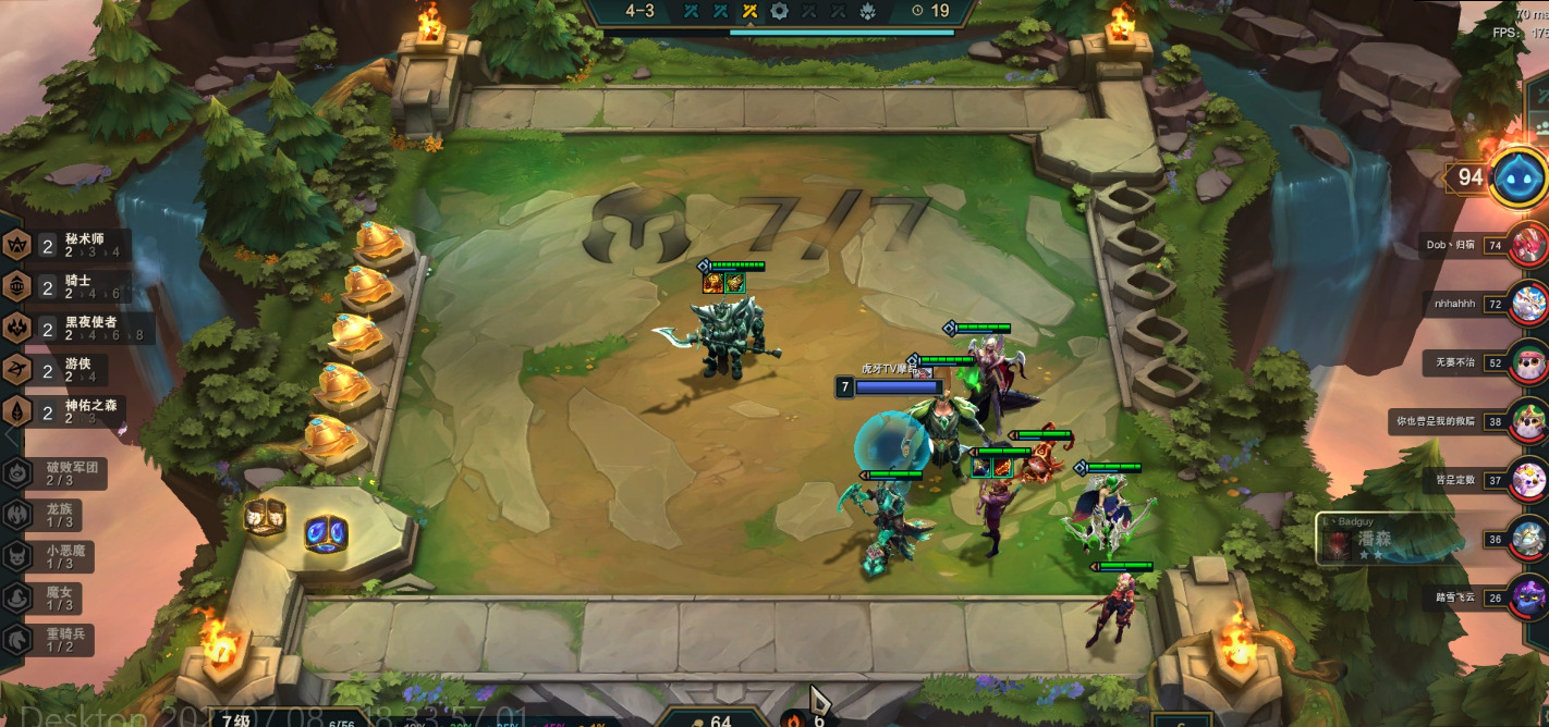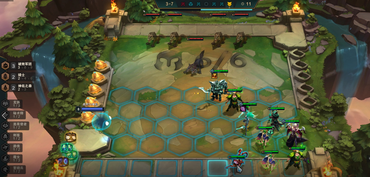 来到4阶段升级7人口,开始小D卡准备转型,但也需要看自身装备,能保证月男羊刀、饮血才考虑,由于摩昂这局是4-2白嫖月男就考虑走黑夜游侠了,但大家在玩的时候需要摇摆确定阵容。