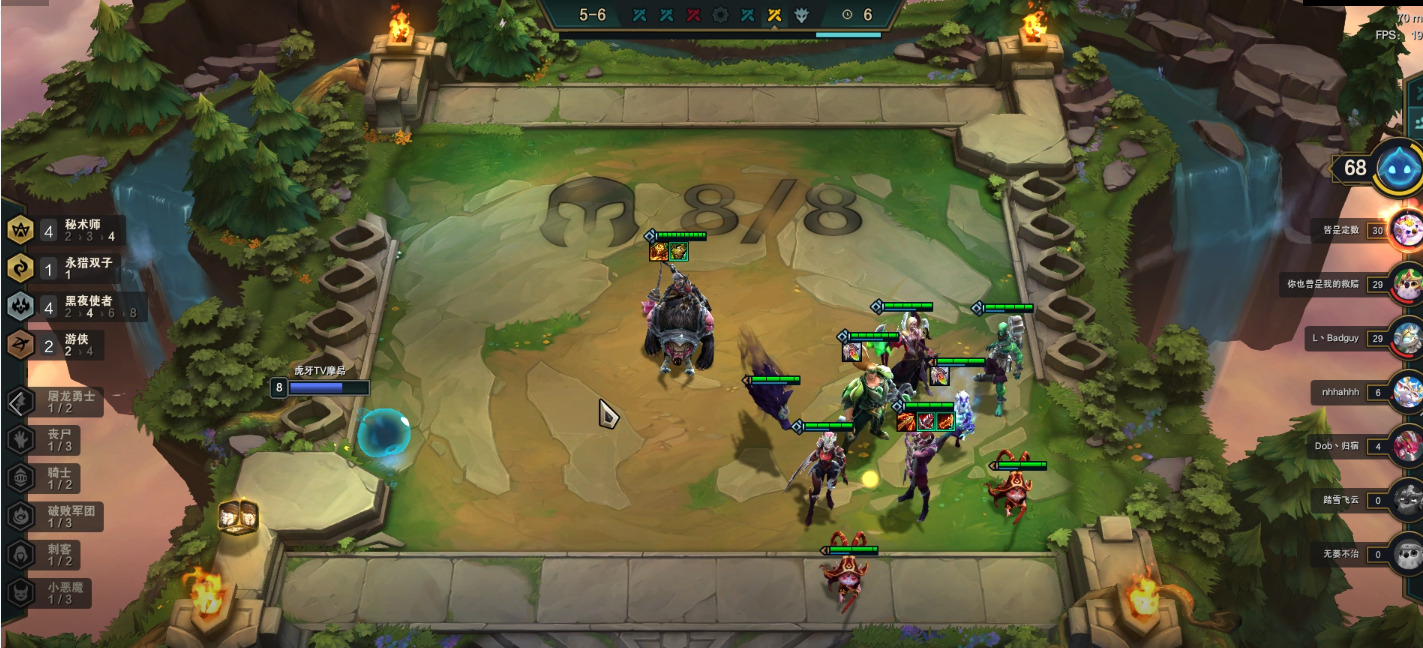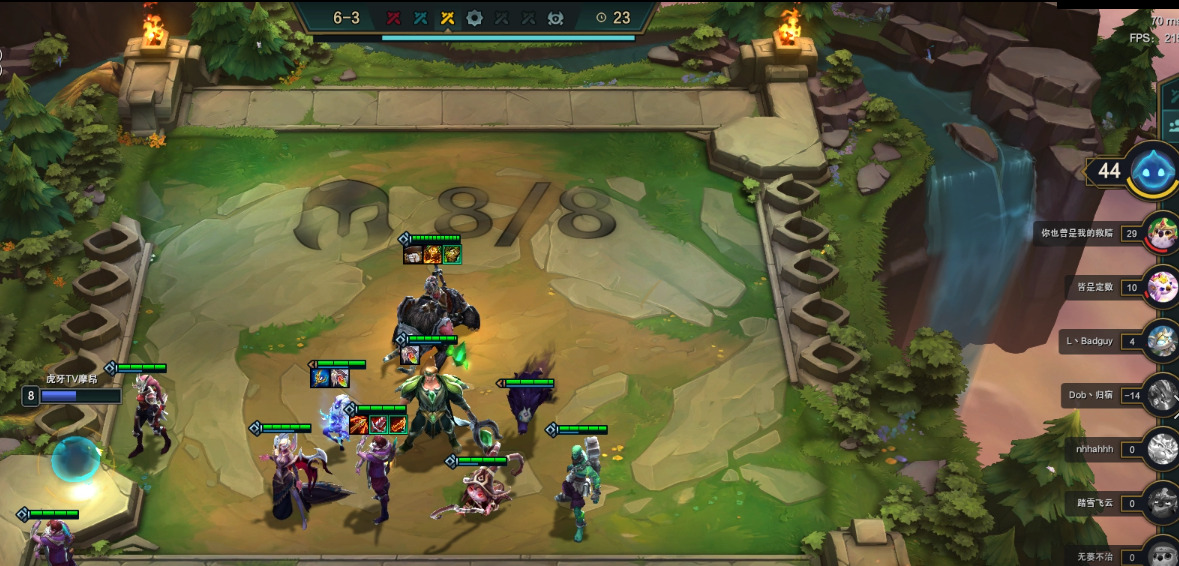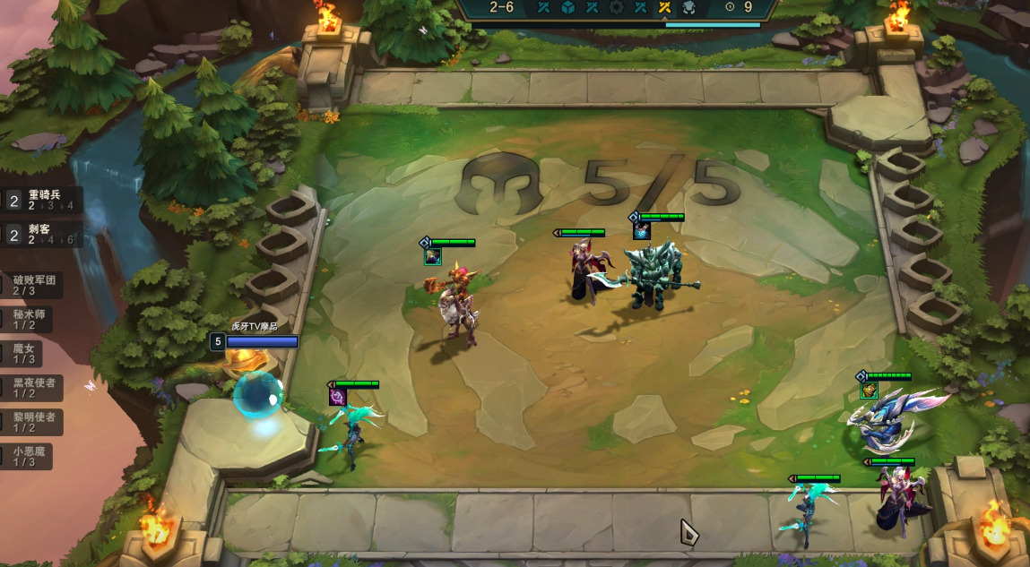 来到5-1阶段,直接拉8人口,开始大搜卡,尽量全员2星,如果搜到诺手后可看自己血量与当前经济是否决定拉9人口。